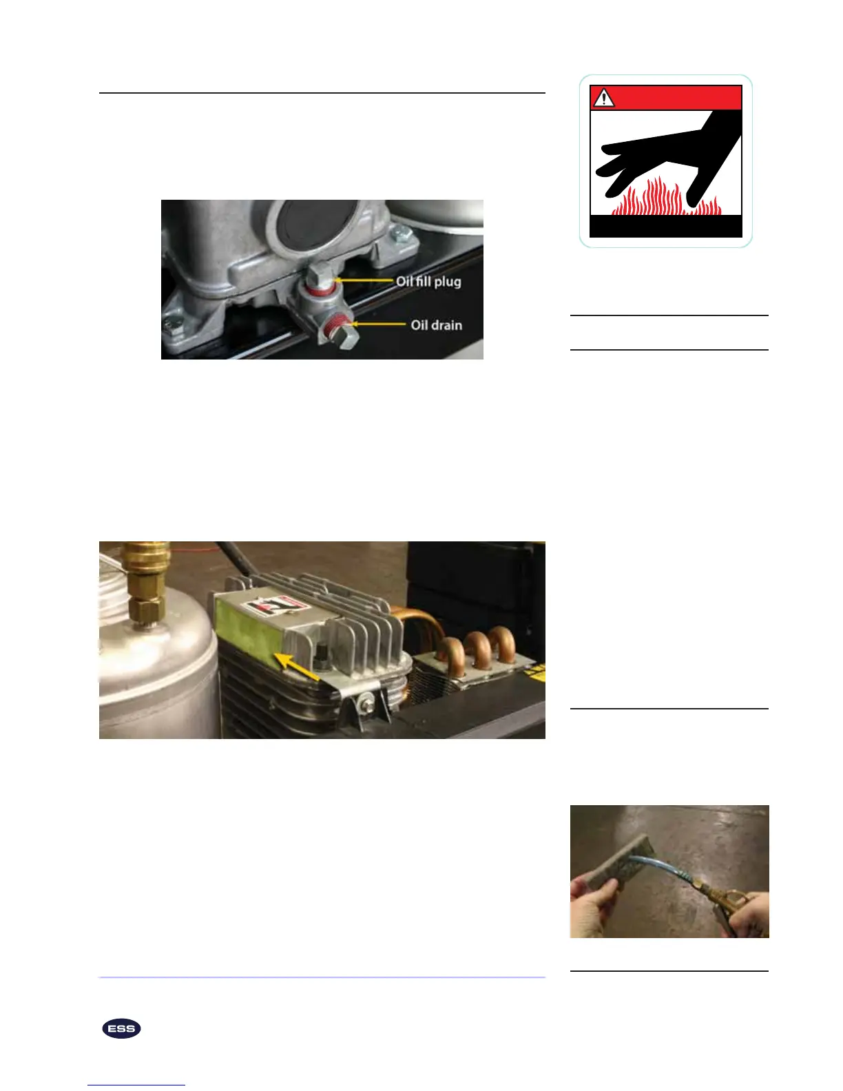 To check the compressor oil, remove the 7/16” oil ll plug. Oil level