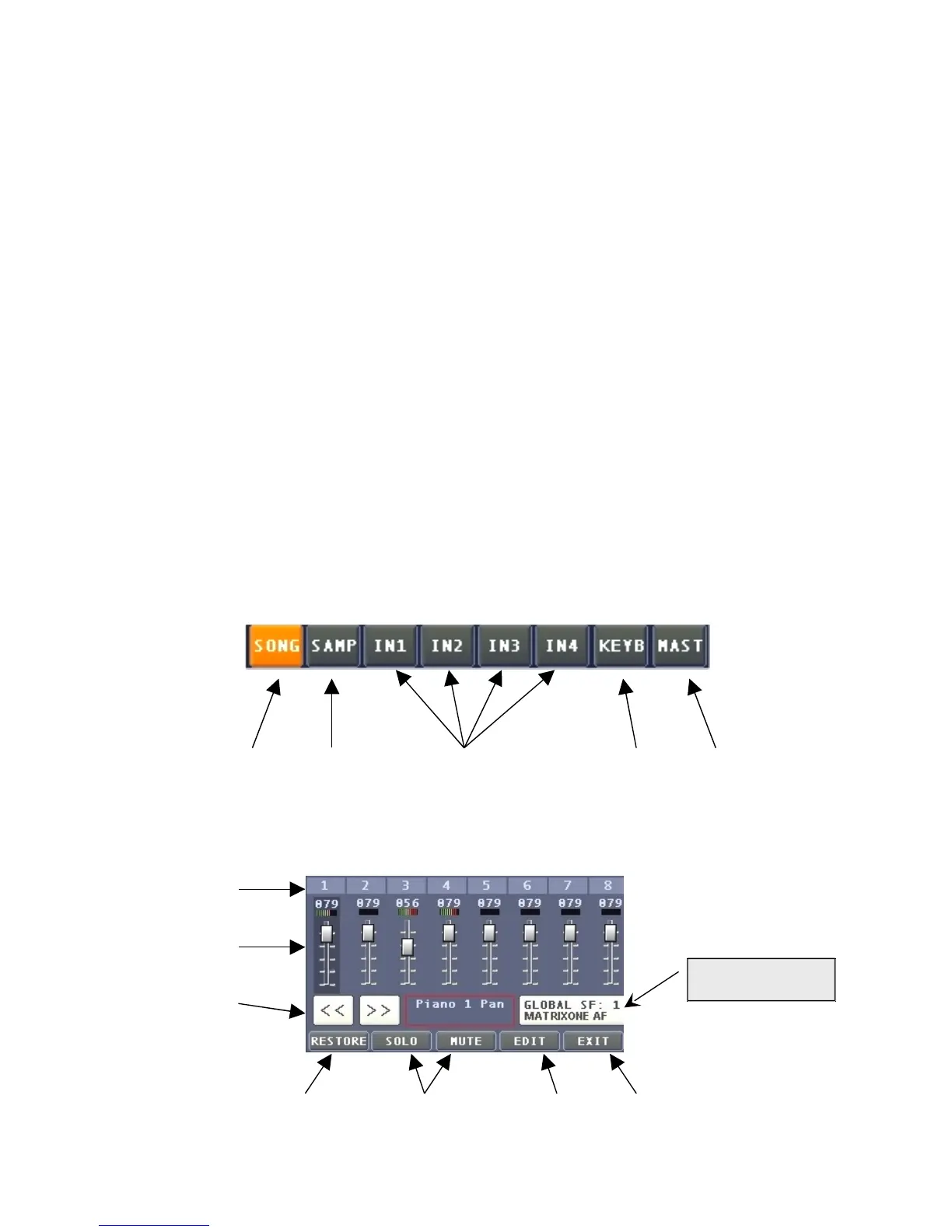 which correspond to the 8 sliders that regulate output volume. These buttons allow to select the