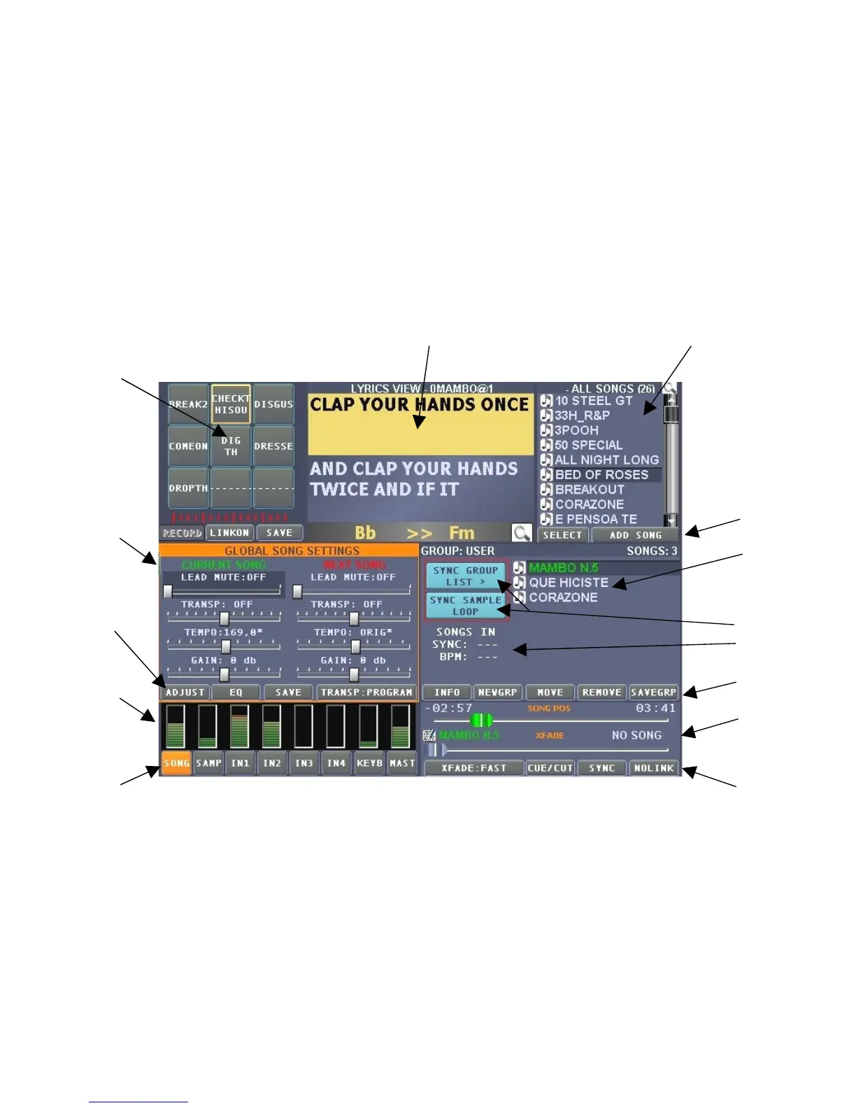 2) Section relative to executing song (CURRENT SONG) and to the song which will be played