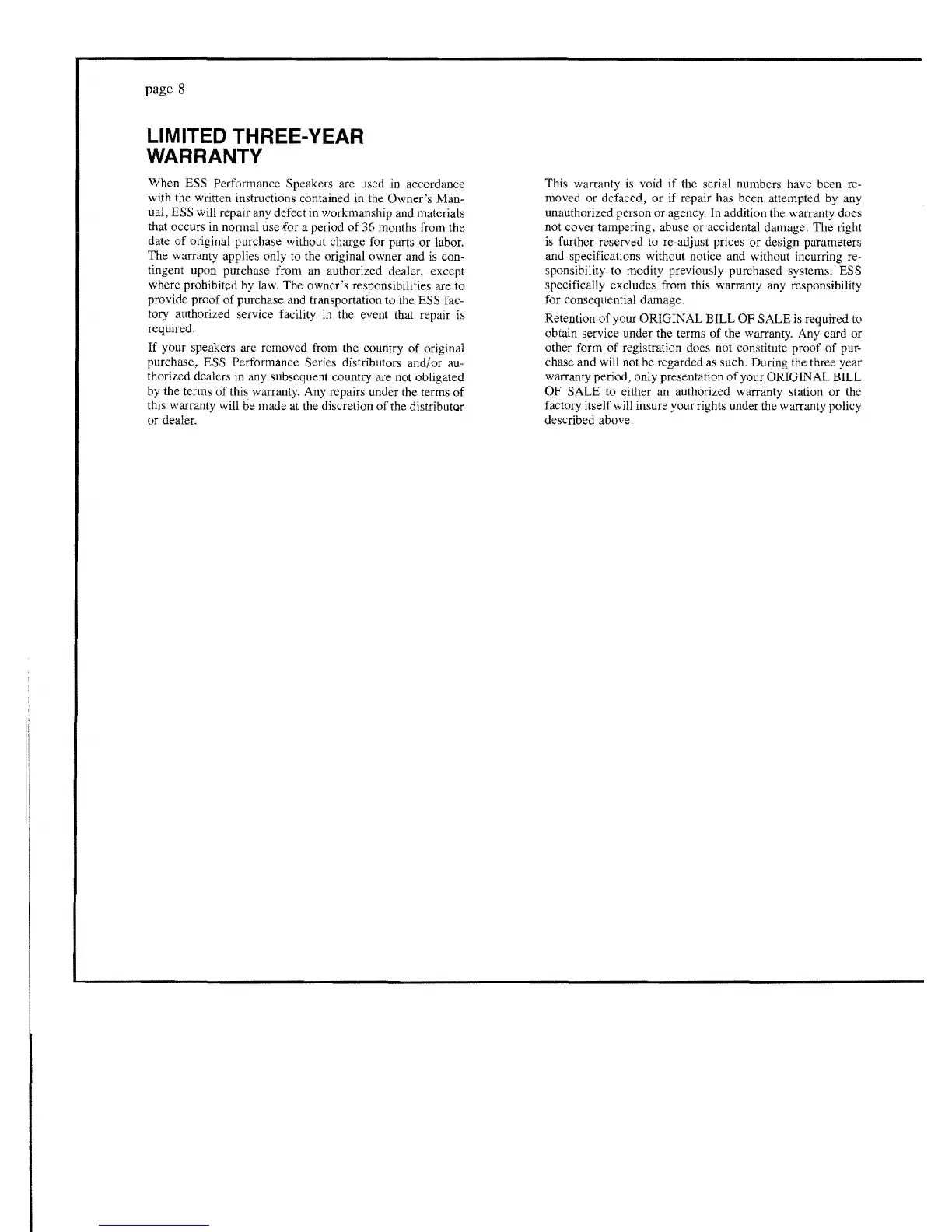 ual, ESS will repair any defect in workmanship and materials