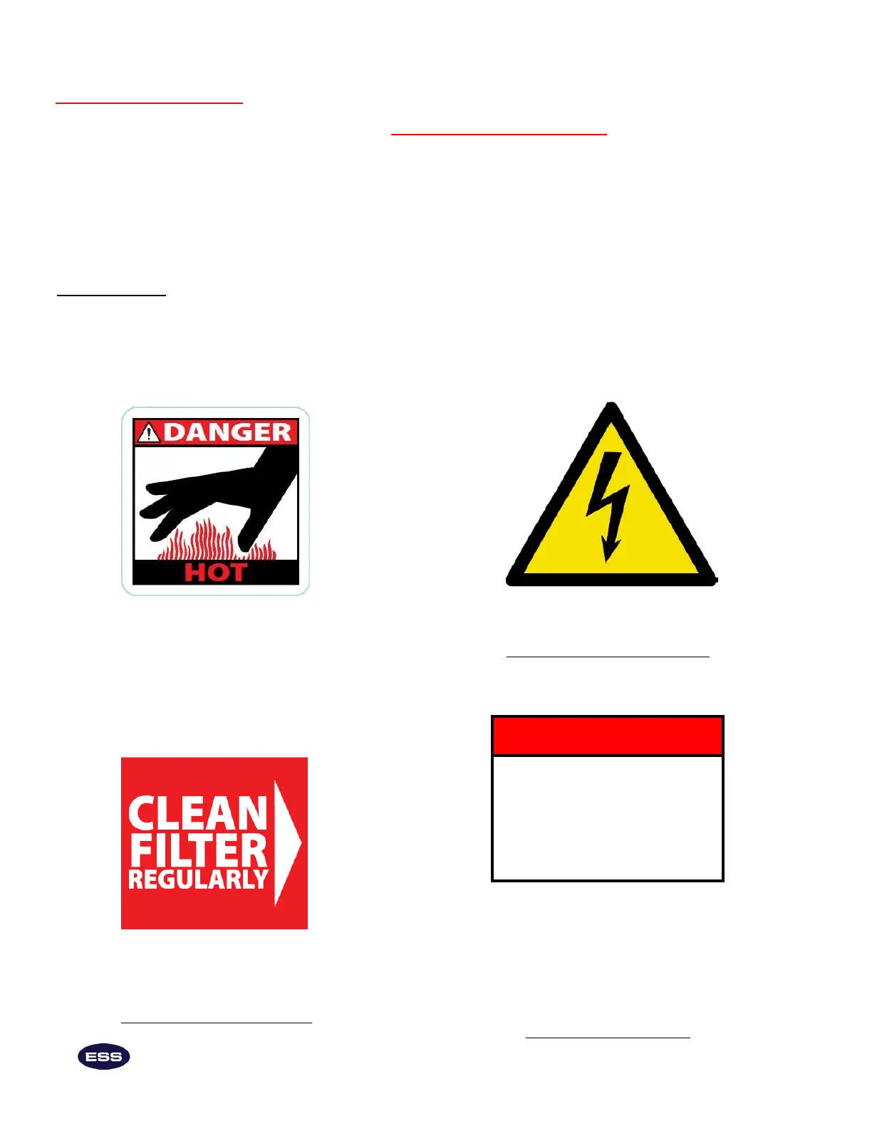 Appropriate safety decals are placed on ESS equipment in order to alert the operator to possible dangers.