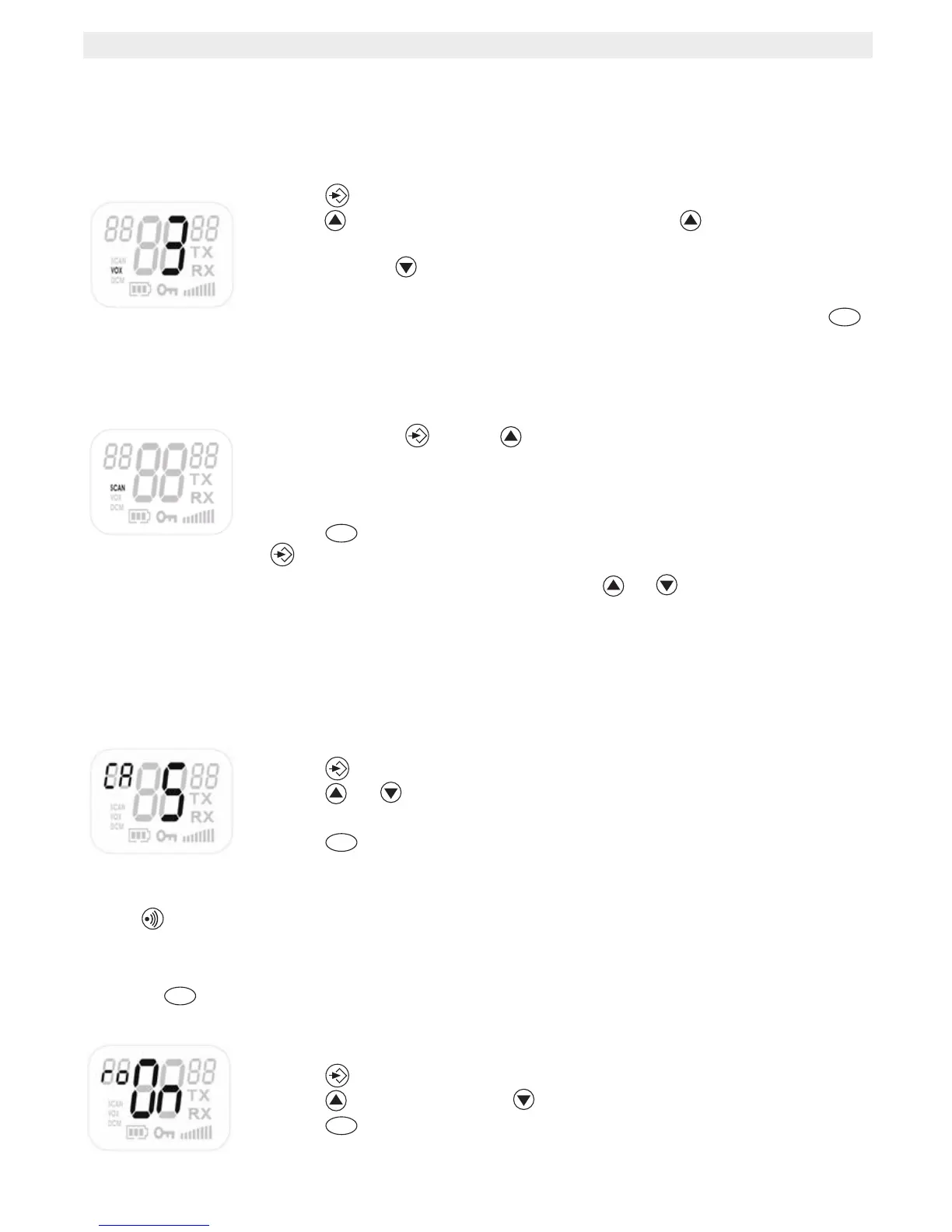 display. Press until OF appears on the display, to turn VOX OFF.