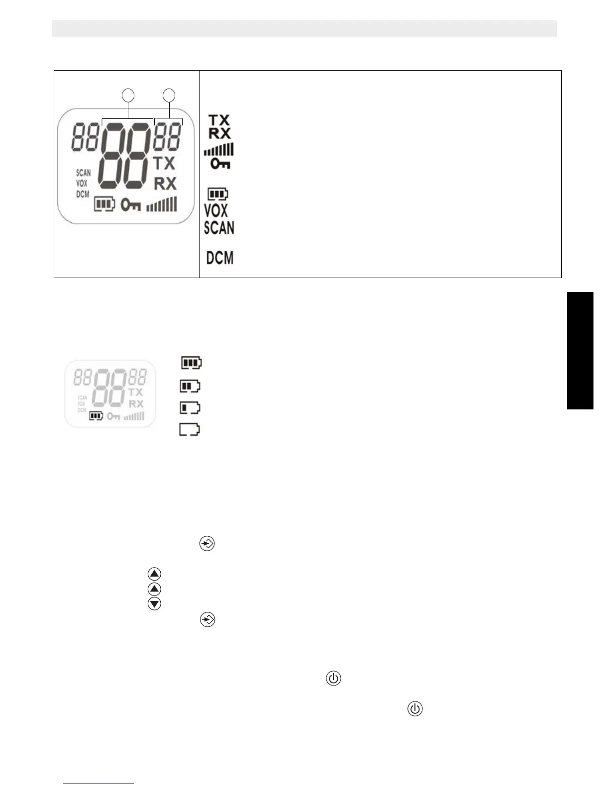 12 Niveau de charge de la batterie/indication de batterie faible