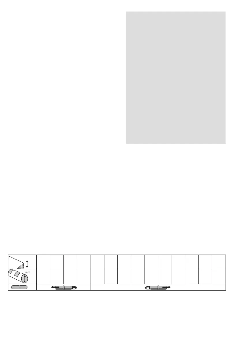 A tabela indica o tamanho adequado da lombada e da profundidade de perfuração para um determinado número de