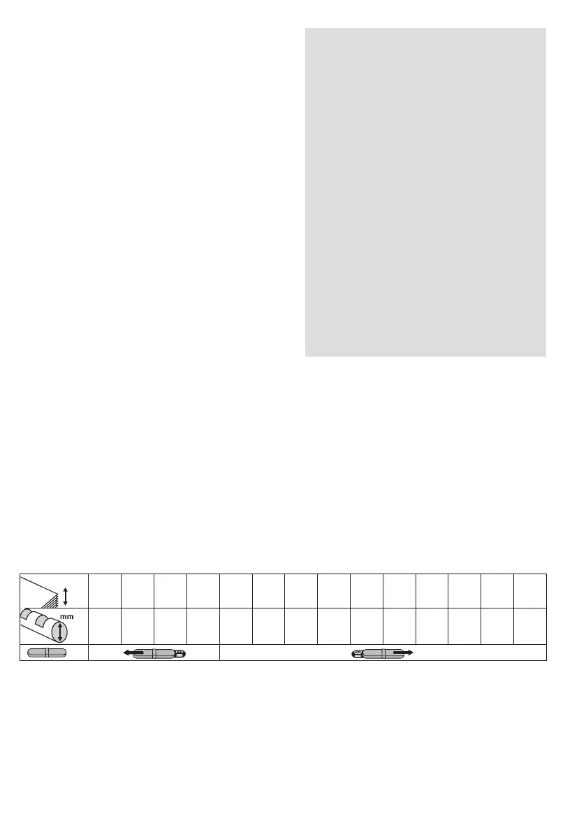 In de tabel worden de geschikte inbindspiraaldiameter en stansdiepte voor een bepaald aantal vellen aangegeven.