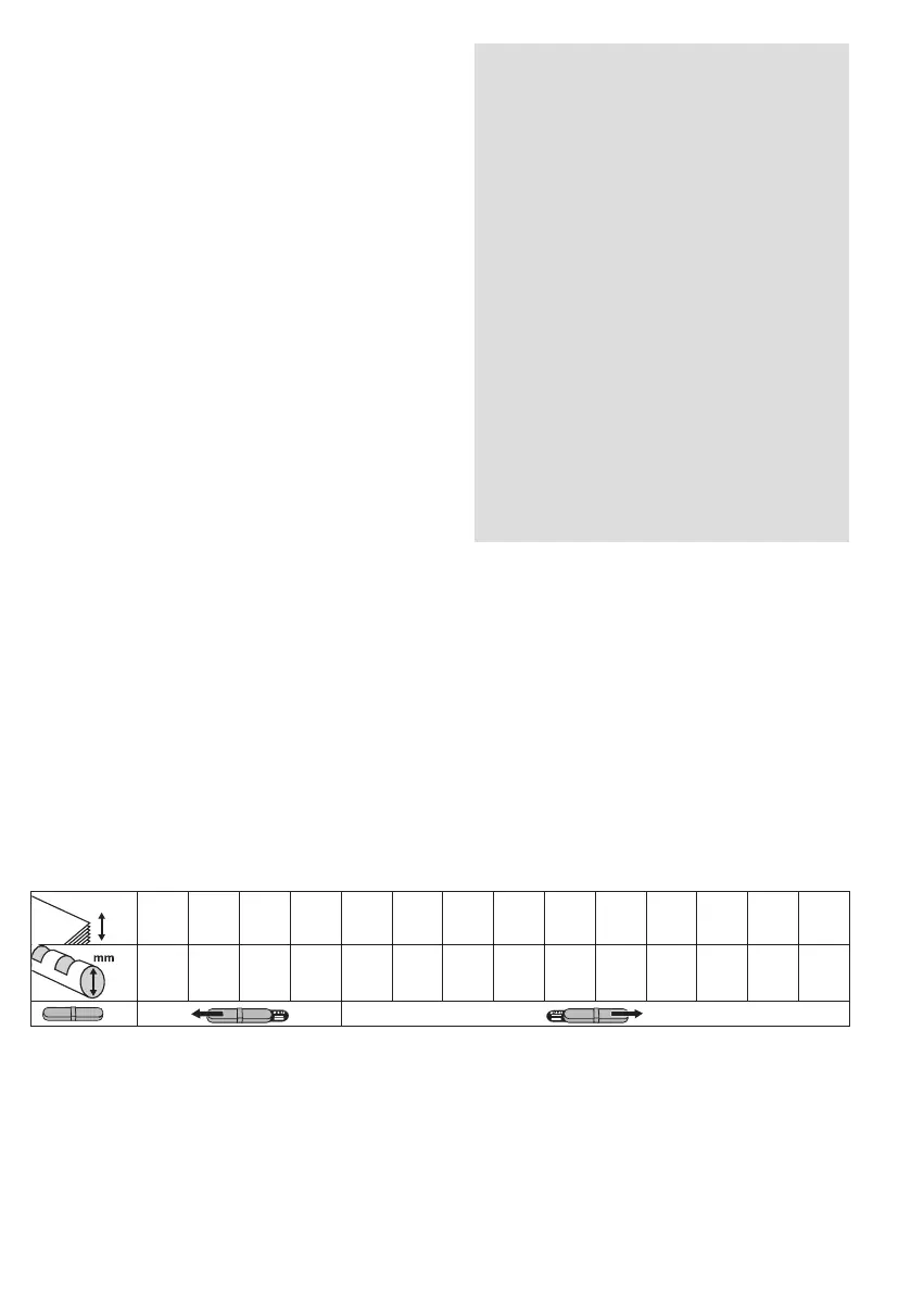 Tabellen viser hvilken størrelse spiralryg og hvilken stansedybde der egner sig til et bestemt antal ark.