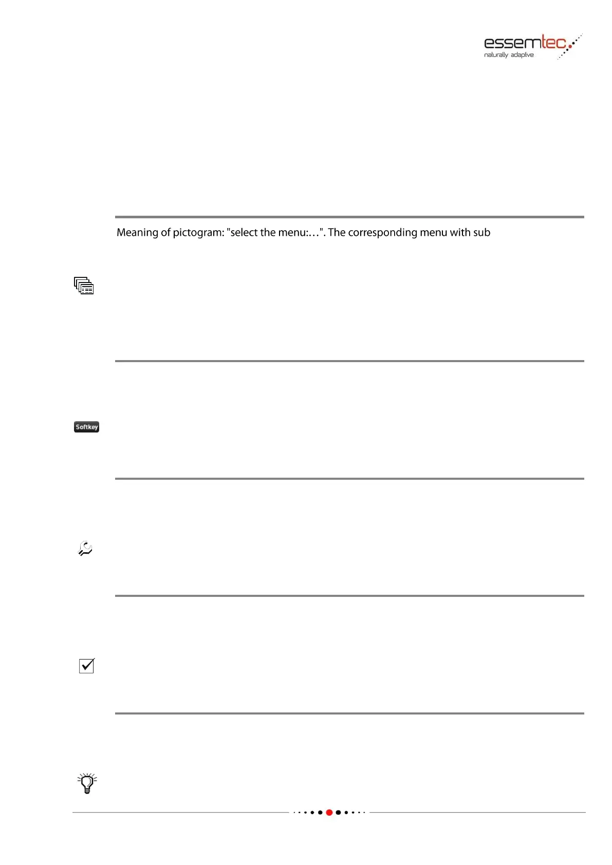 Meaning of pictogram: "click the soft key ...". The corresponding soft key is written next to the