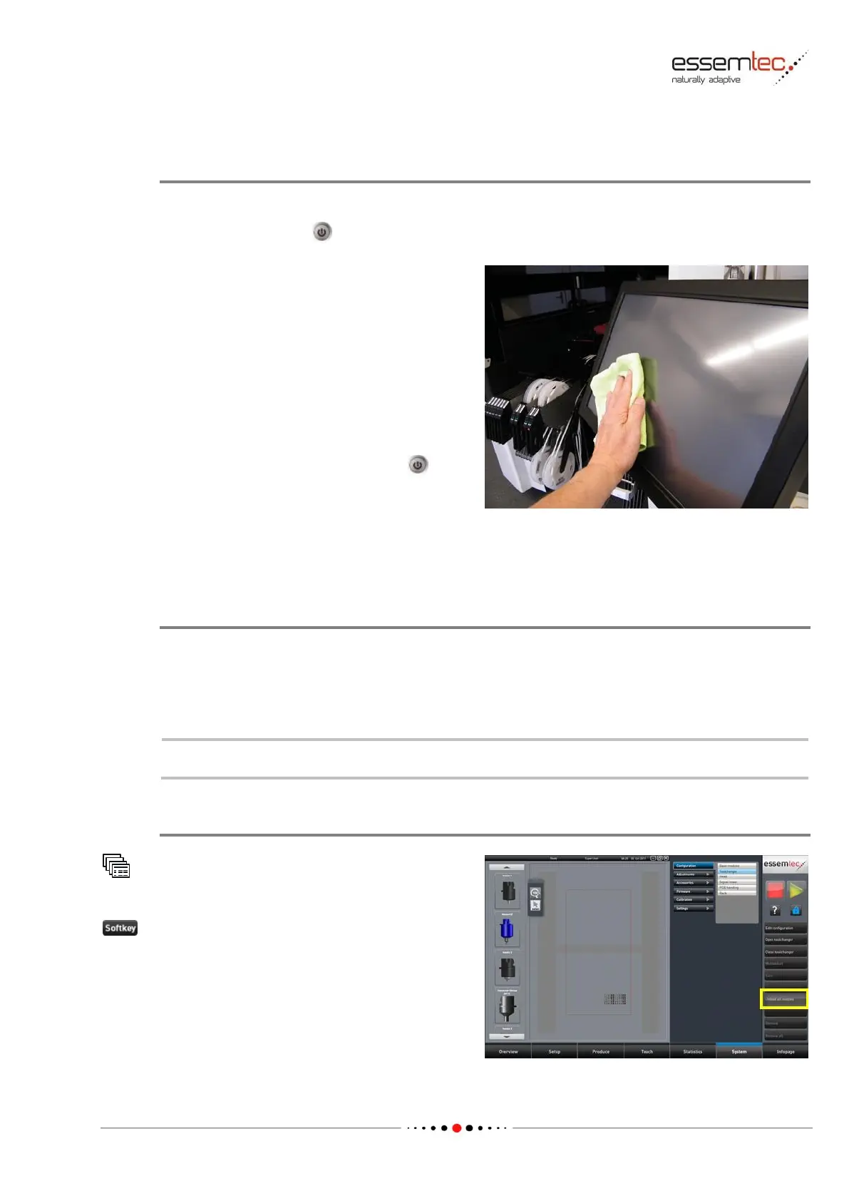 Switch off the monitor before cleaning to prevent unintentional pressing of any softkeys.