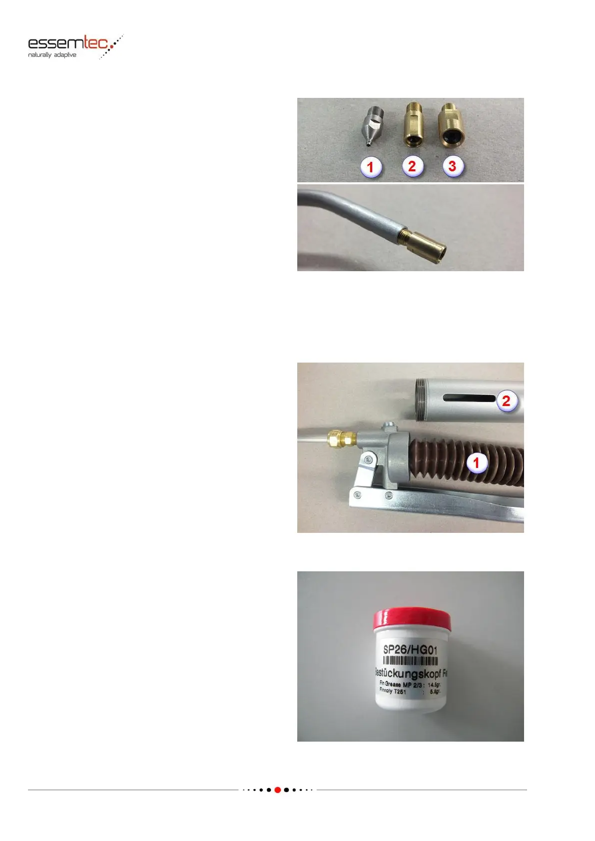 Screw in the grease gun tube (2).