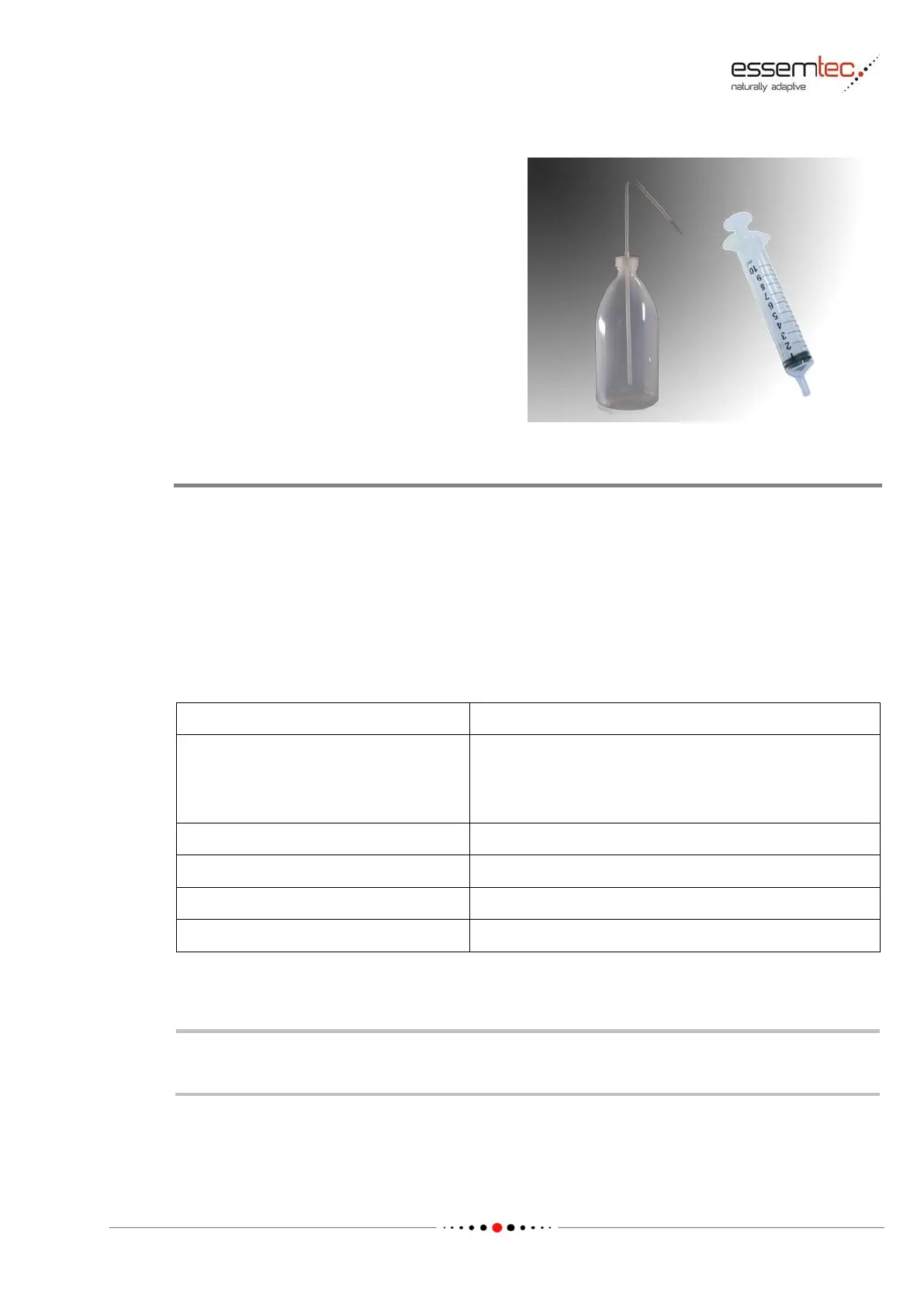 Squeeze bottle or syringe are used to purge the