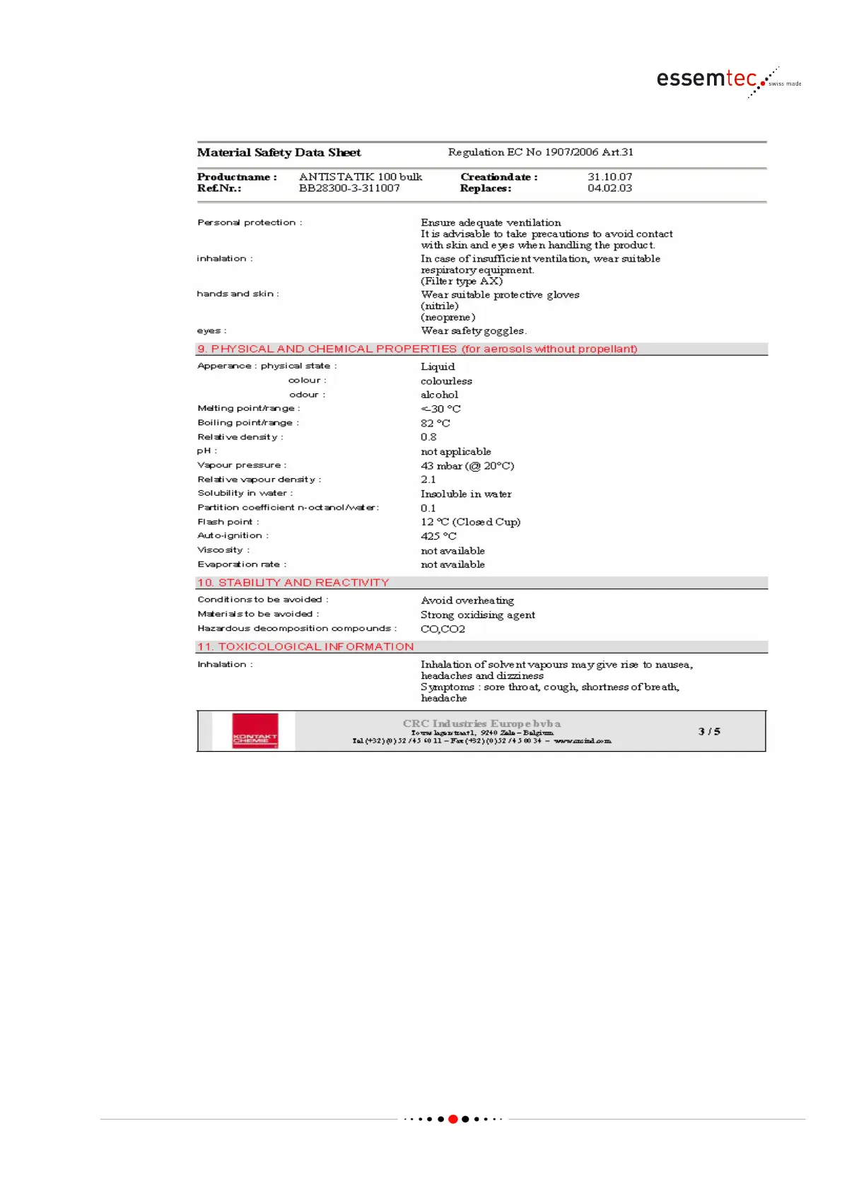 Material Safety Data Sheet (MSDS)