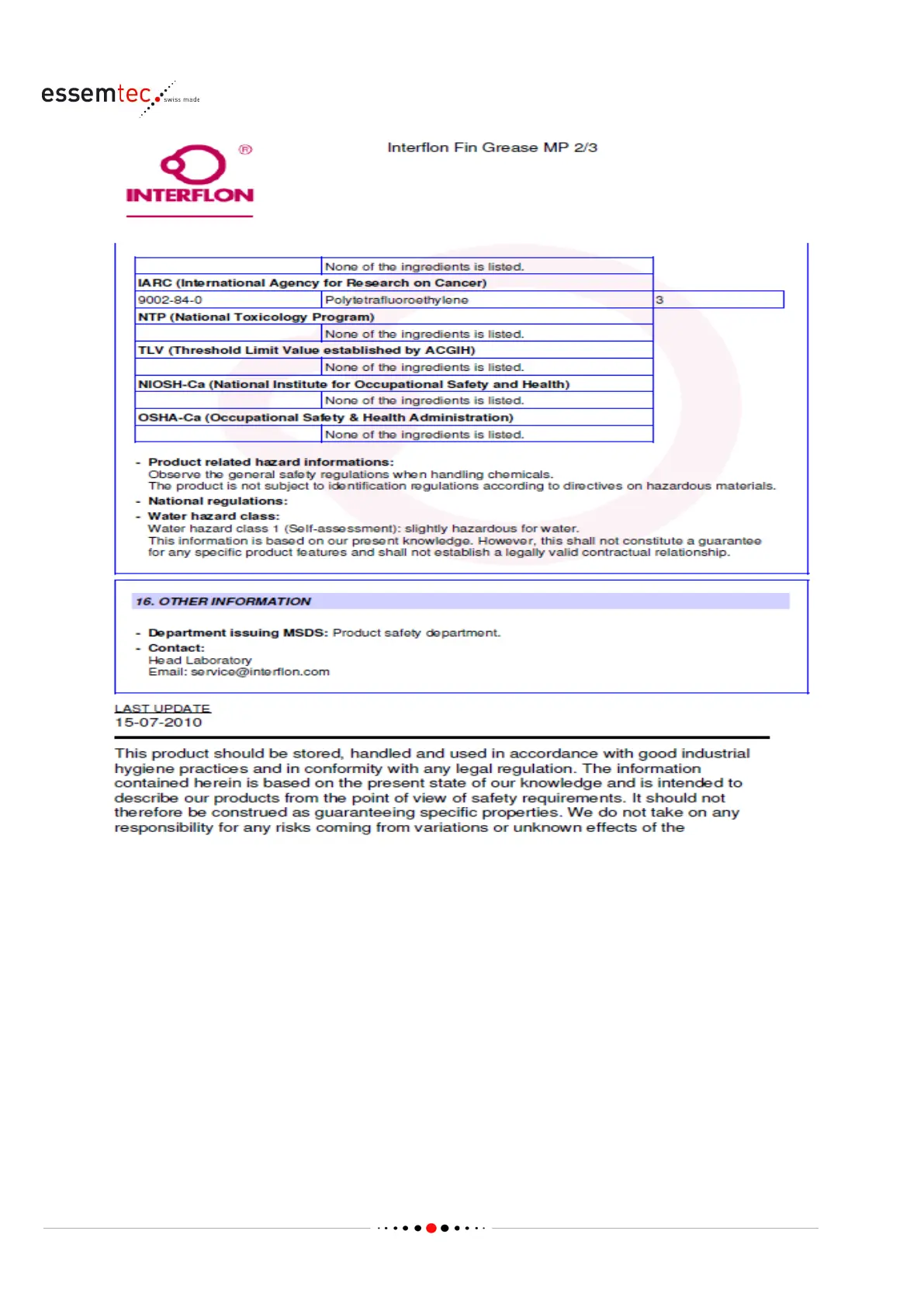 Material Safety Data Sheet (MSDS)