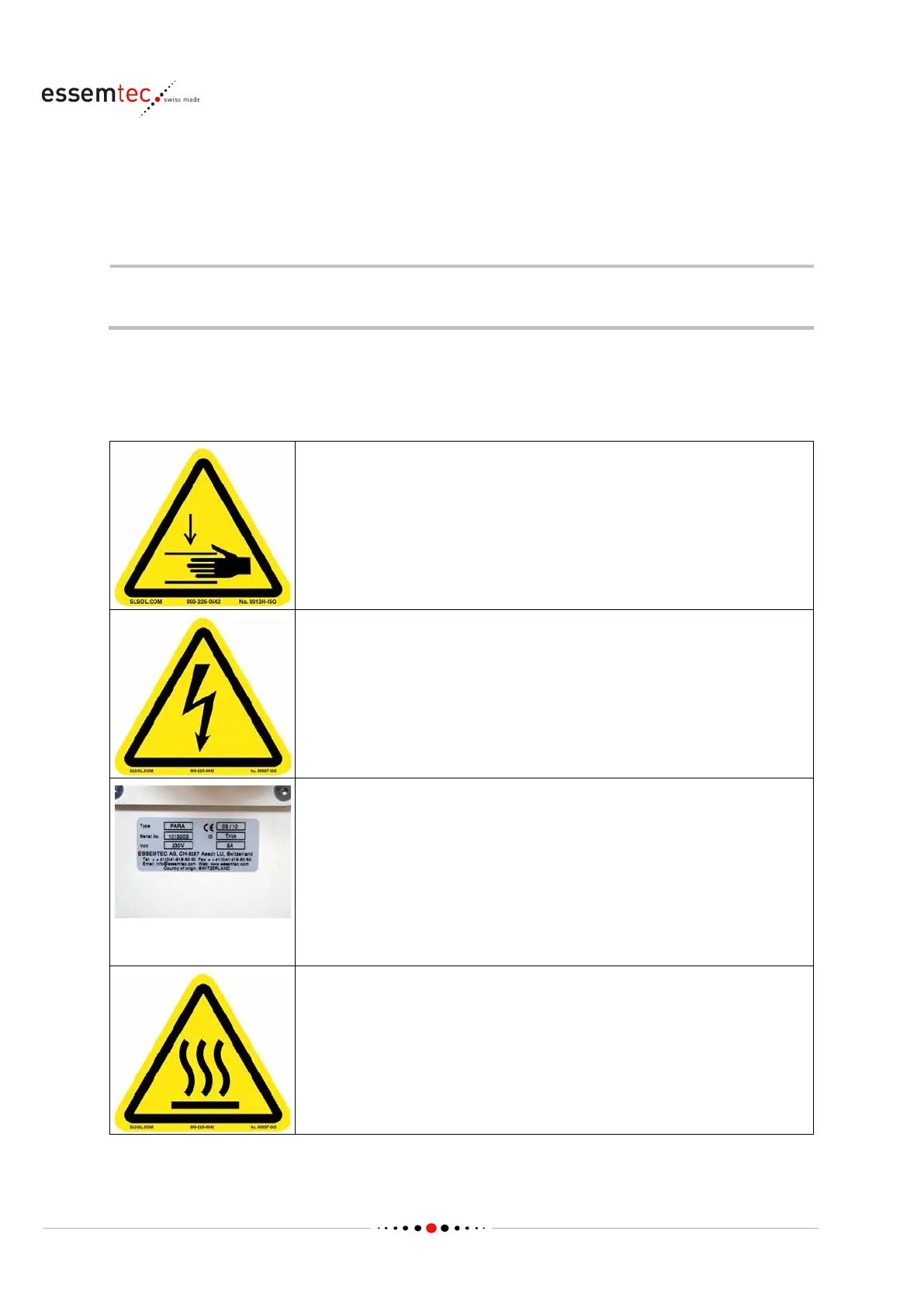 Check periodically the existence of safety labels on the equipment. Replace damaged or