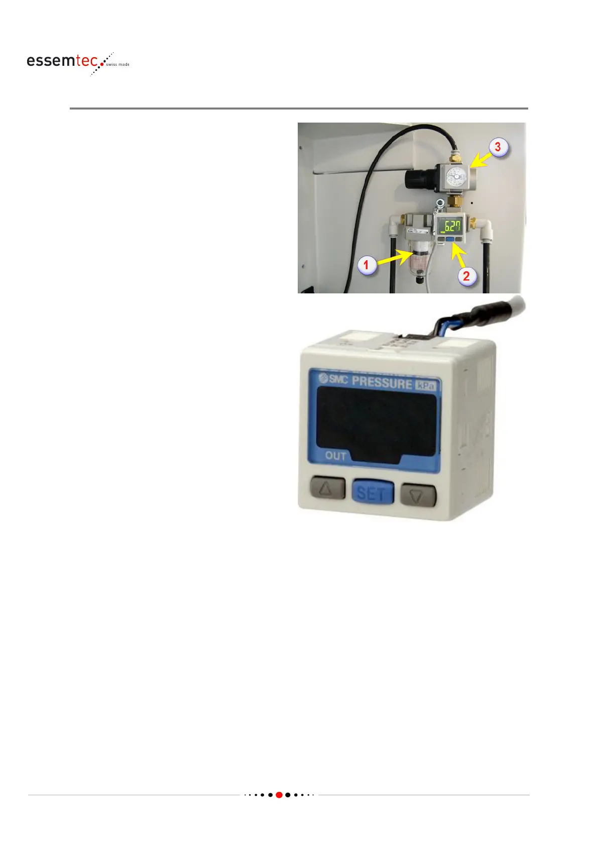 Check the switching threshold on the Digital Pressure Switch (2). It must be set to 0.5 MPa (5 bar)