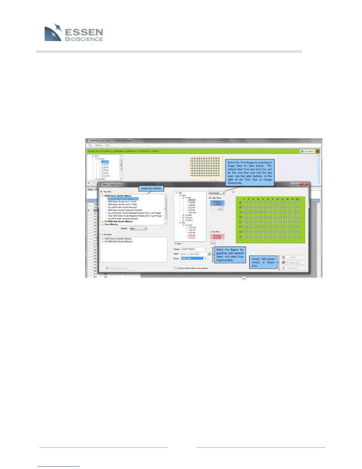 Once “Graph/Export” is selected, the Metric Graph/Export window will open allowing the