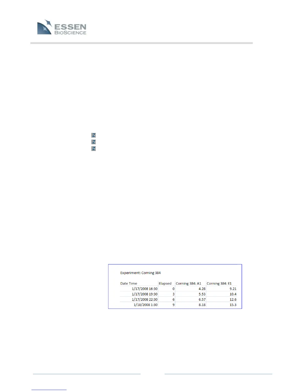 In this case, each scan time will be listed to the far left, and the data for each