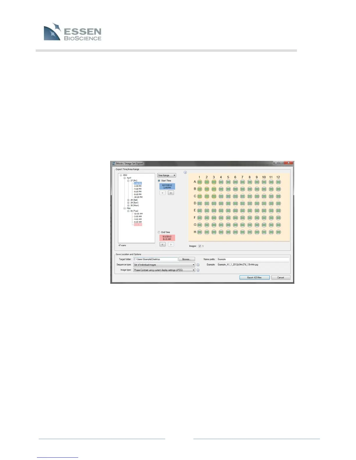 selected images for the highlighted time point will be exported.