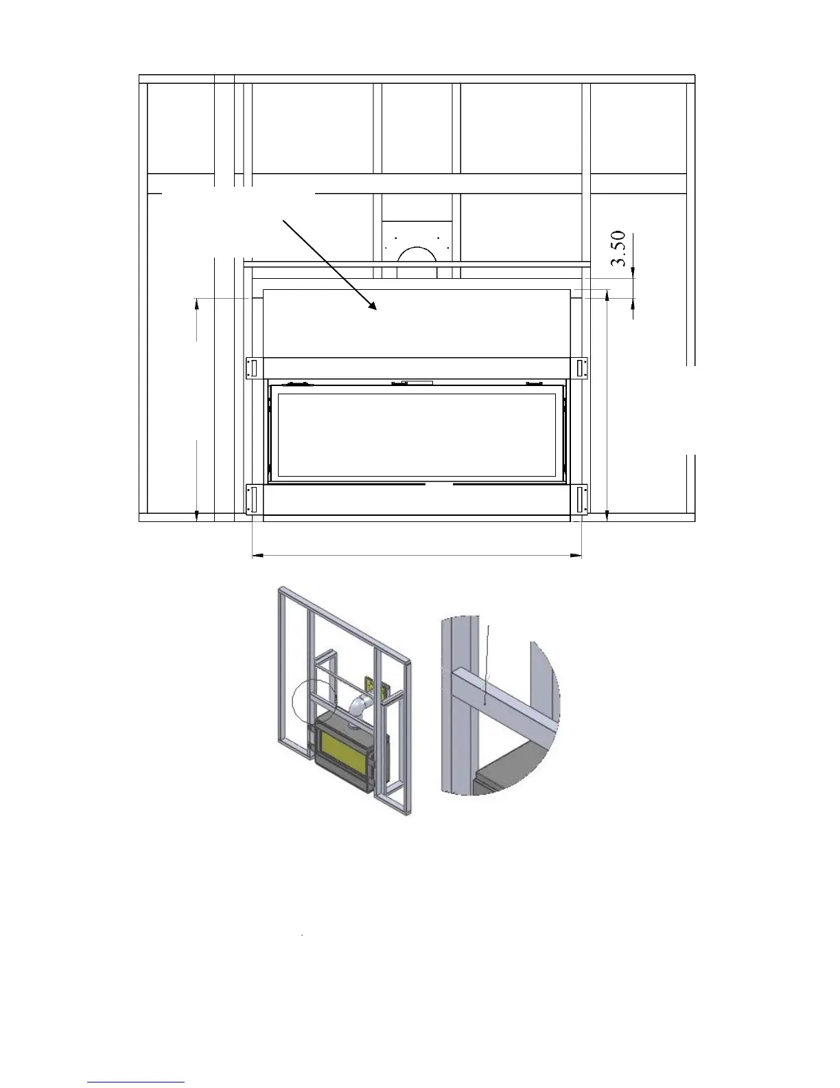 The closest combustible material above the fireplace must be a minimum of 40.00” from the floor with the stud