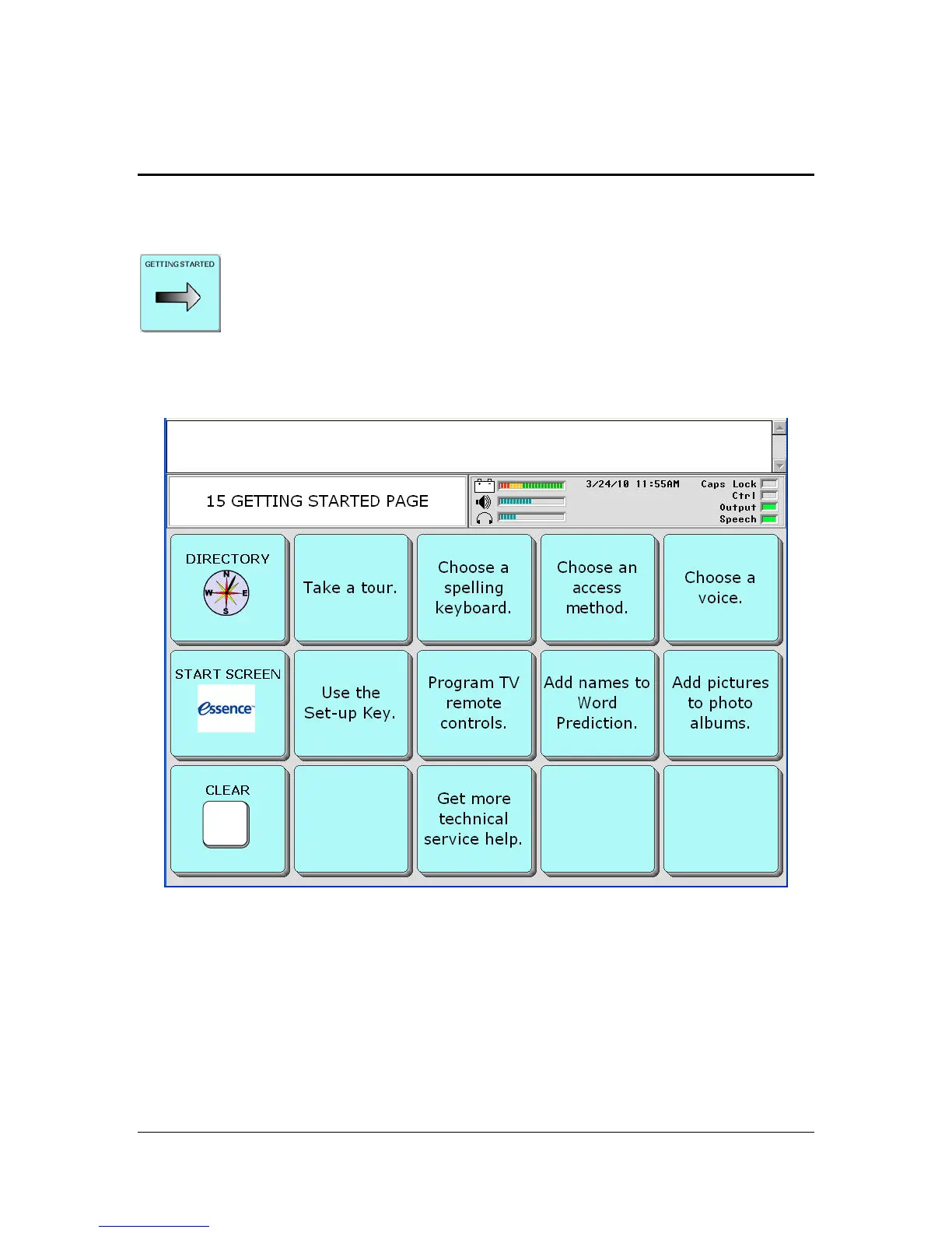 On the DIRECTORY page, select the GETTING STARTED key
