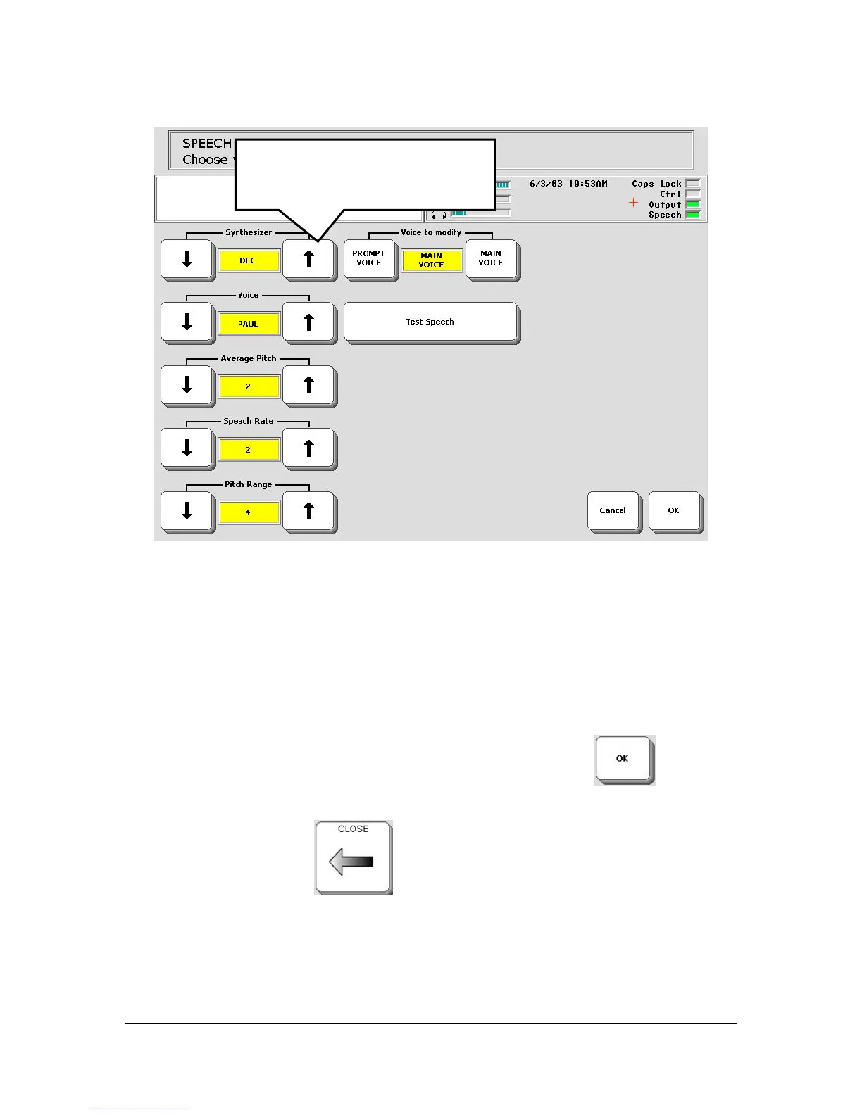 Use the Rate key to make the speech somewhat slower or somewhat faster.