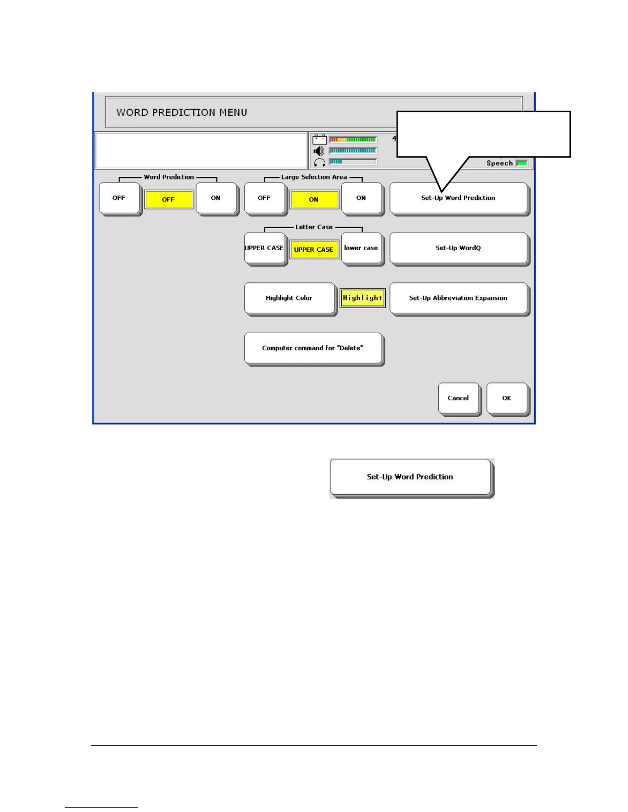 Select the Set-Up Word Prediction key