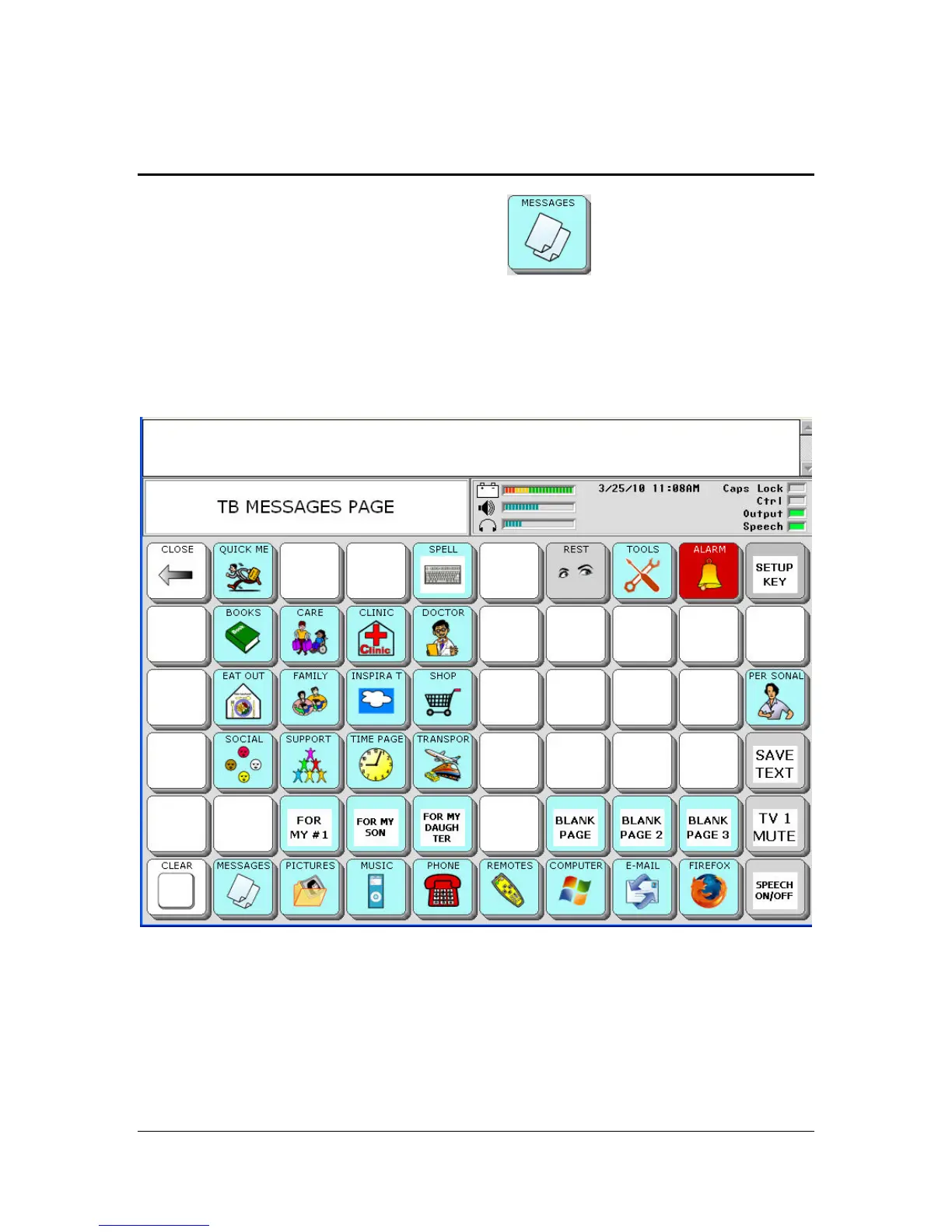 When you select the MESSAGES key you see:
