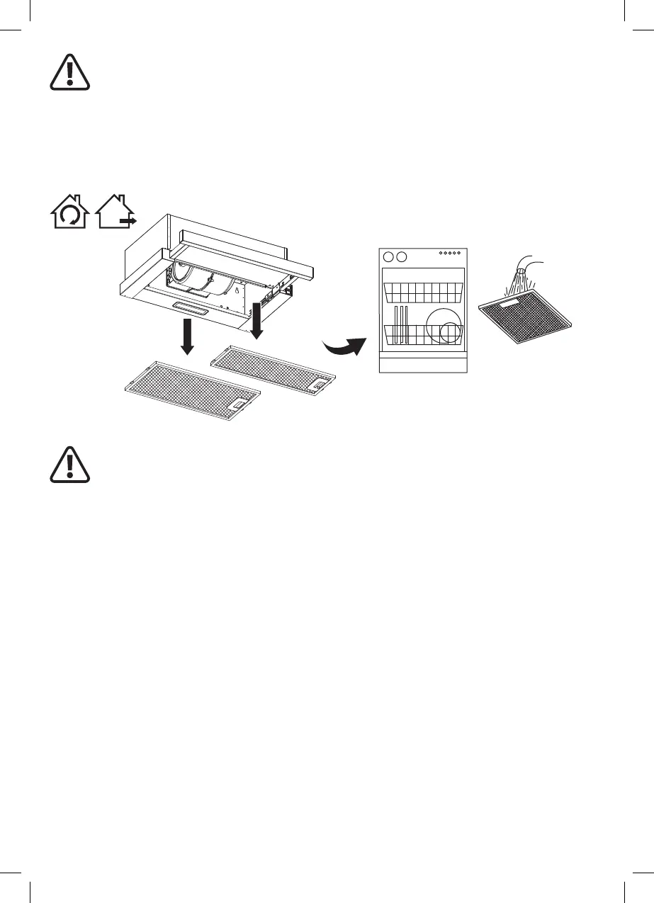 Aluminium lters: To avoid res, clean thoroughly once a month. Remove the grease lters as shown and