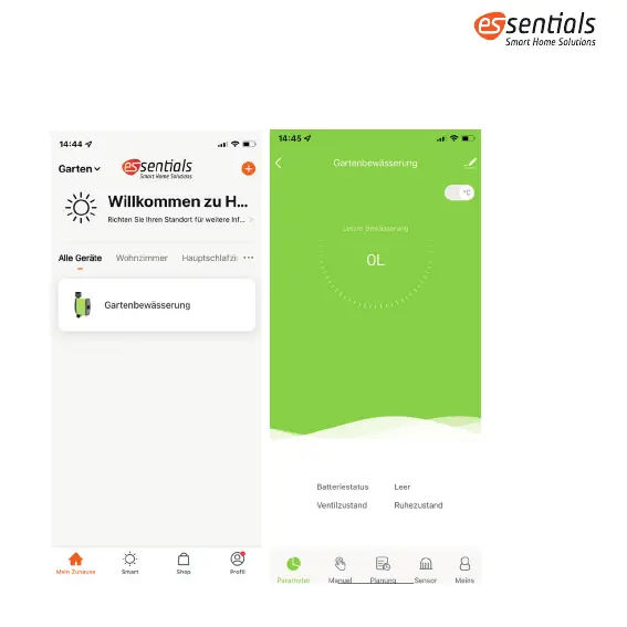 1. Nachdem Du die essentials Bewässerungseinheit mit der App verbunden hast,