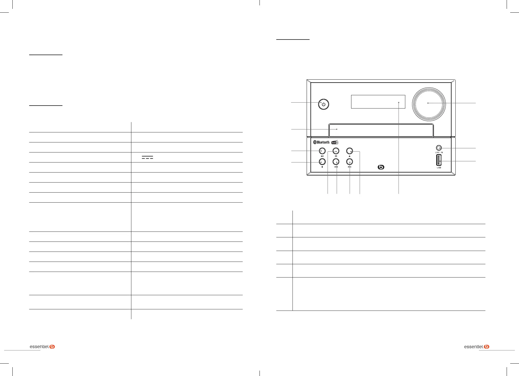 5 Keuze van de afspeelbron: DISC, USB, DAB, FM, LINE IN, BT (BLUETOOTH).