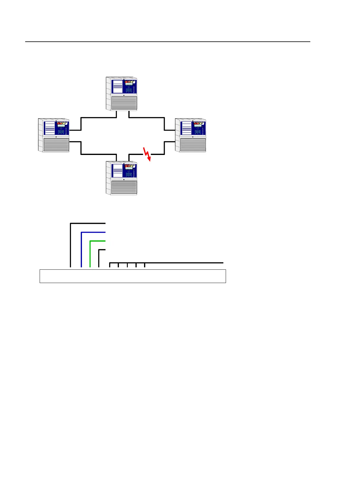 In the illustrated example, four fire alarm control panels are interconnected in the essernet