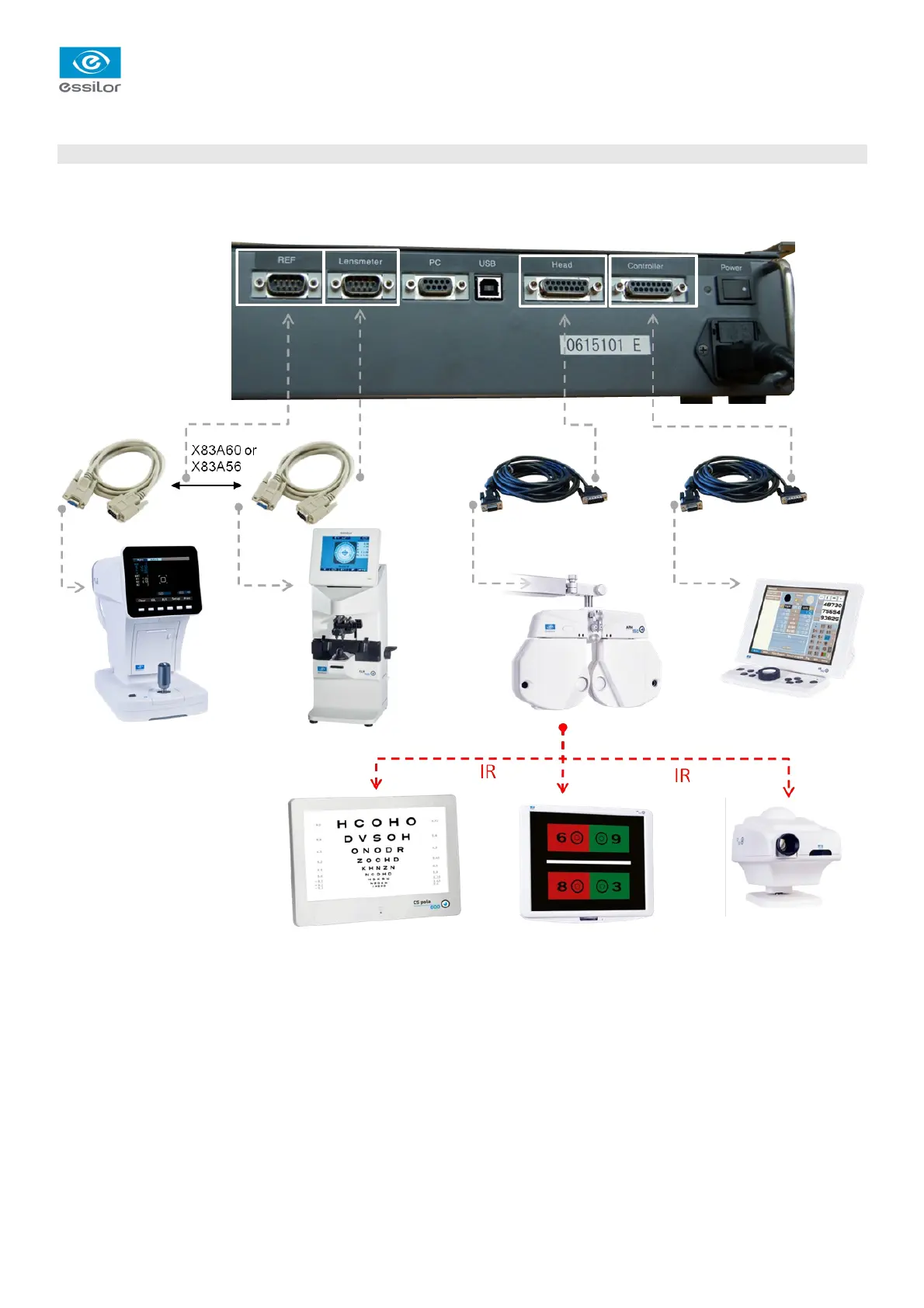 plug in the cable (ref. X83A60 or X83A56) between the ALM500 or the ALM700 and the “Lensmeter” port