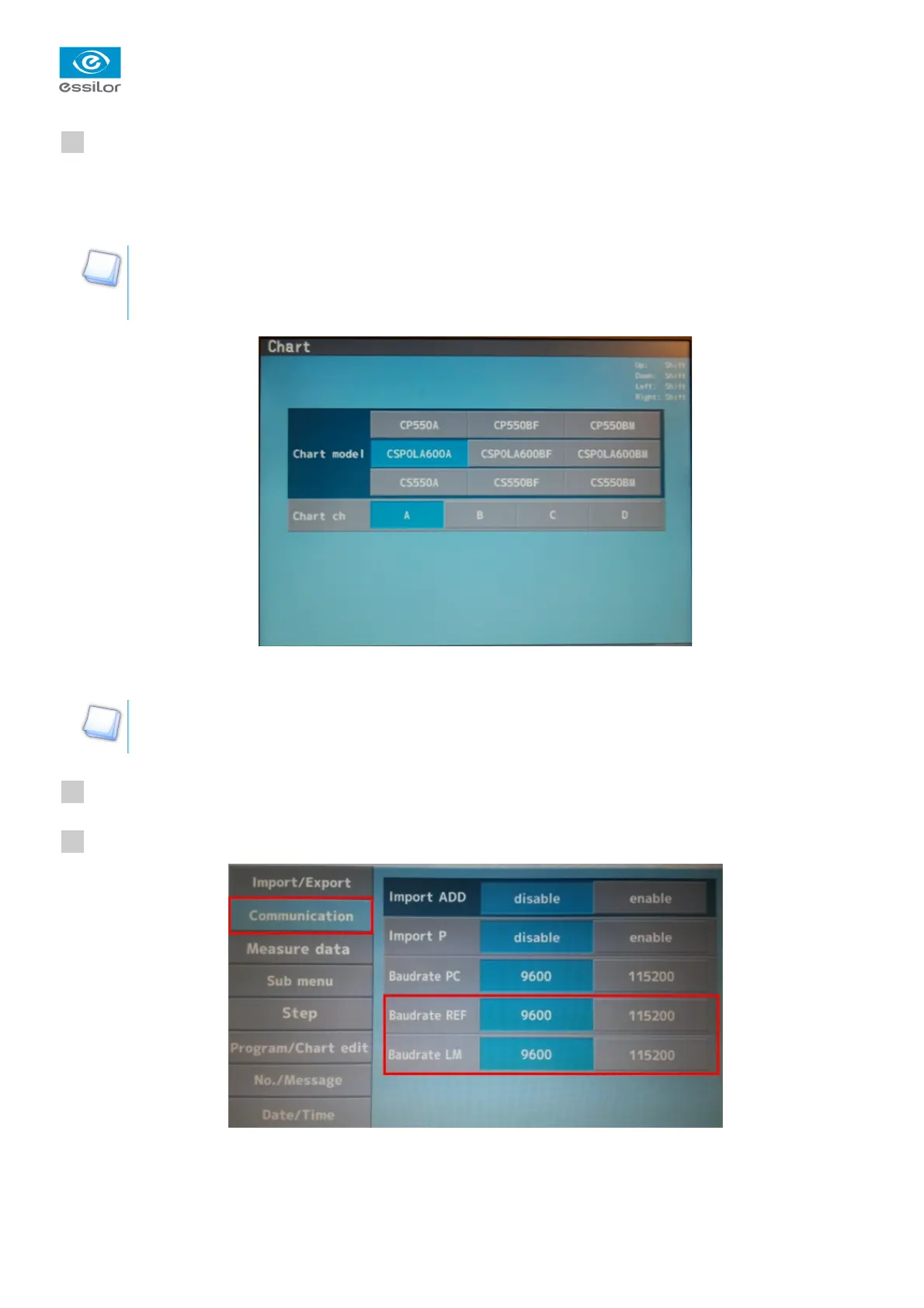 Complete the fields “Baud rate LM” and “Baud rate ref.” with the same values as on the devices.