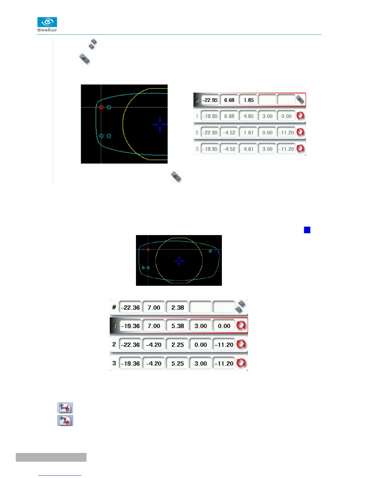 You can position each drilling point in relation to the reference drilling point by modifying the values in the
