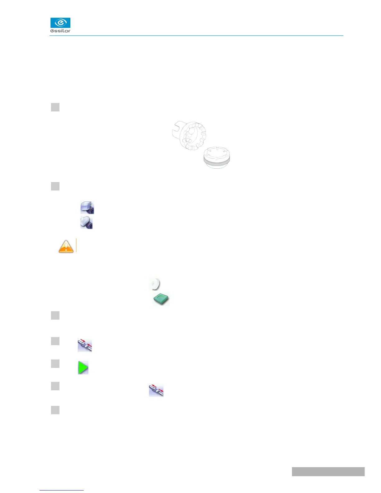 Insert the dressing stone for the selected cycle between the lens clamp shafts, with the hollow side