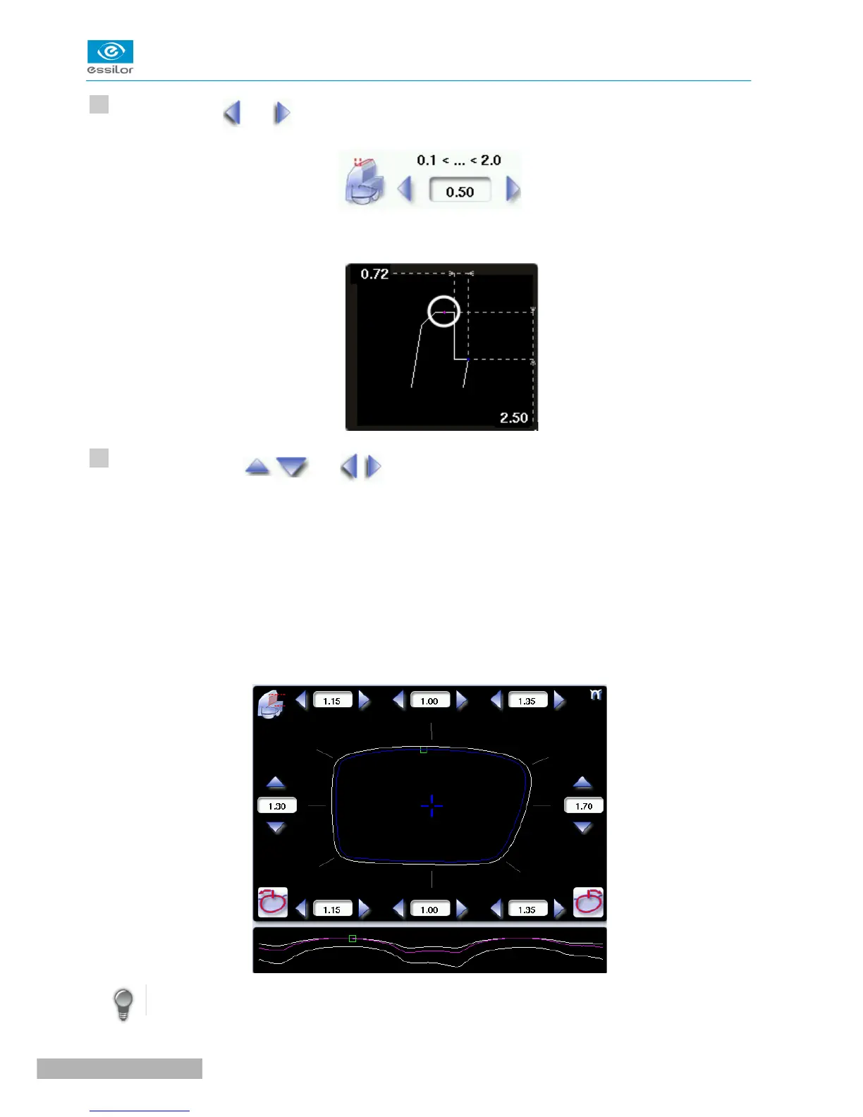 Press on the buttons and to modify the shelf bevel value in each point of the shape in