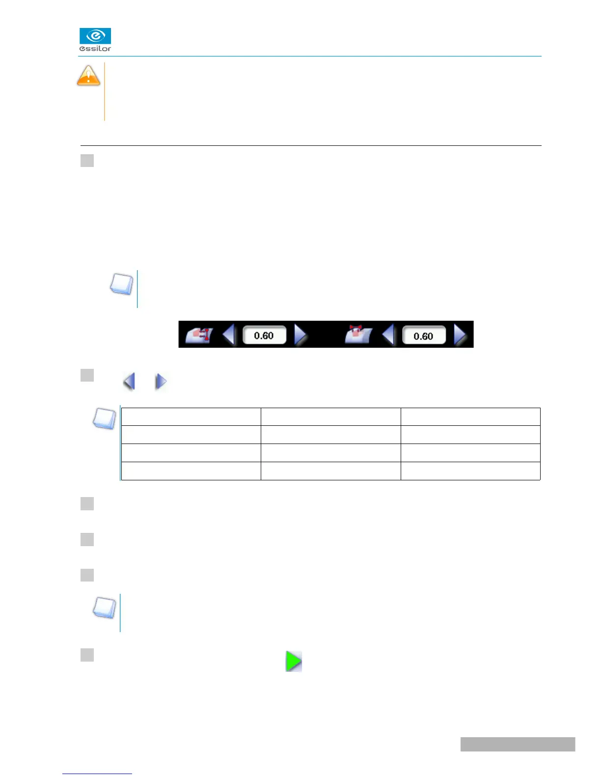 For more information, consult the section Edging a lens > Perform a polishing (F p.65) and Edging a