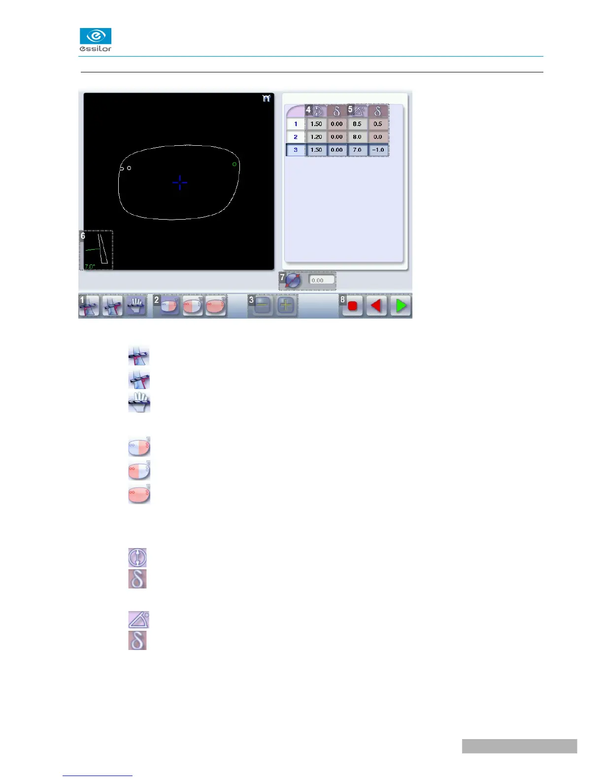 Cross-sectional view of the lens after the feeling cycle, showing the angle of the drill bit at the selected