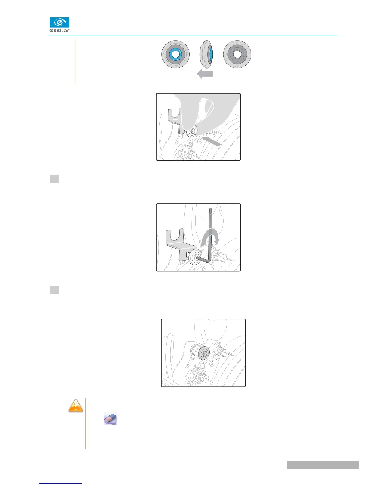 Put the screw back on, insert the key and tighten the wheel (towards the back of the trough) with the
