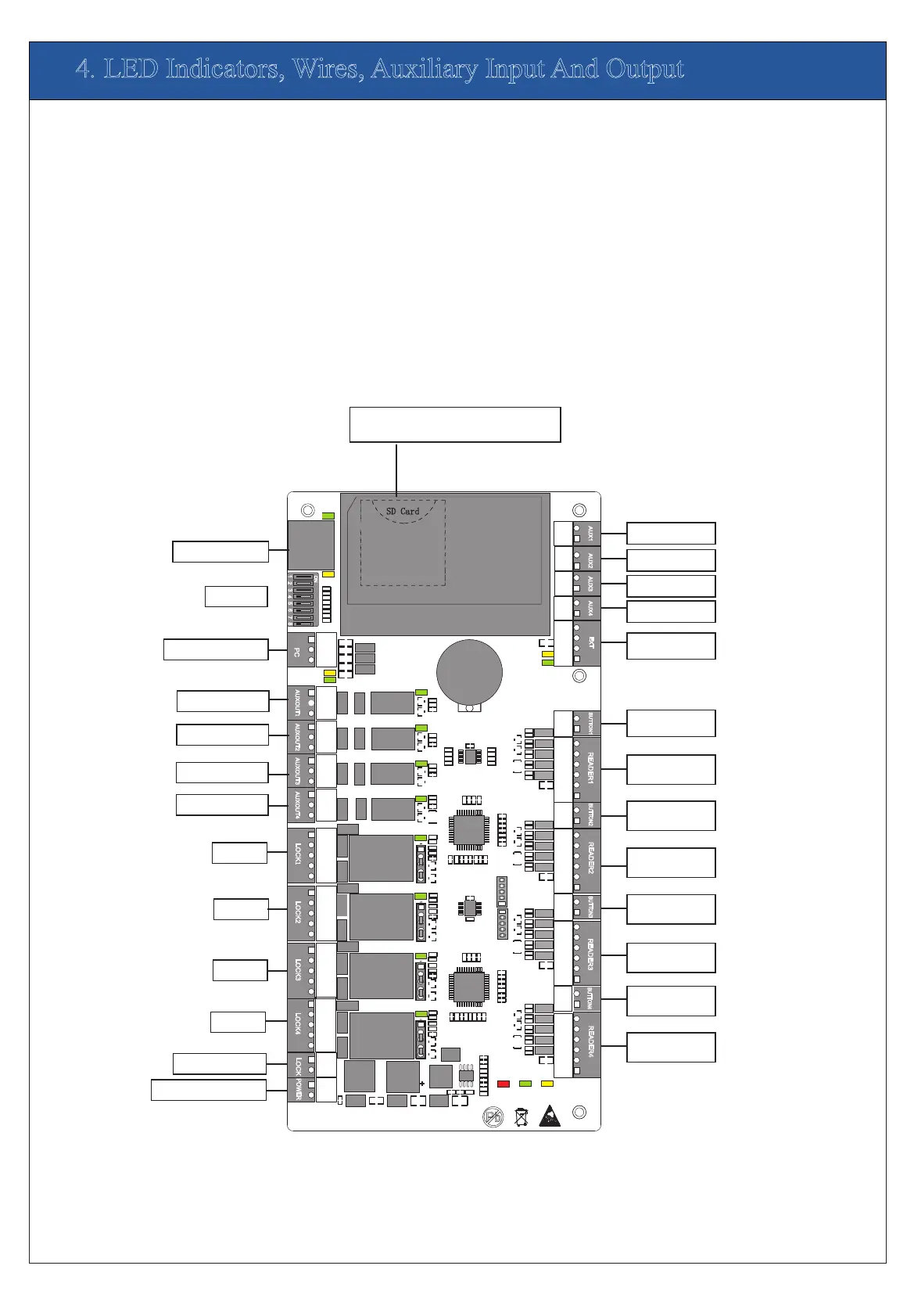4. LED Indicators, Wires, Auxiliary Input And Output