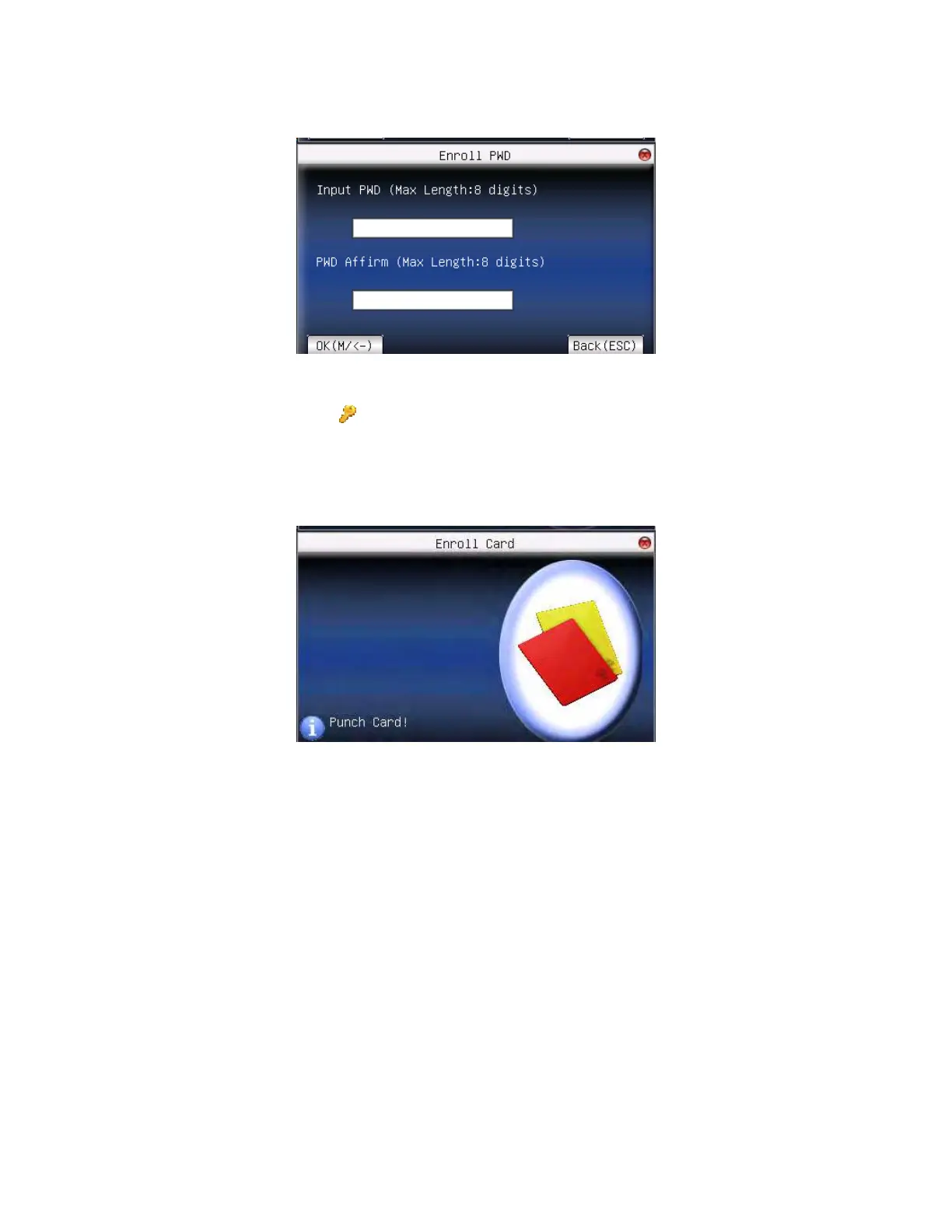 Scroll ▲ / ▼keys to locate the cursor on "enroll card" button, and press