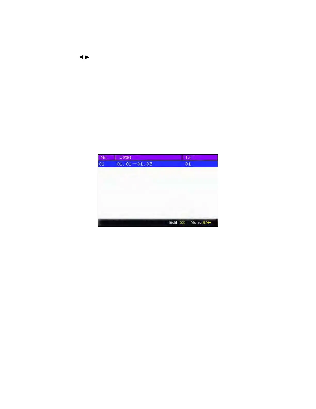 Press Menu -> User Management -> Access Setting -> Holidays Setting