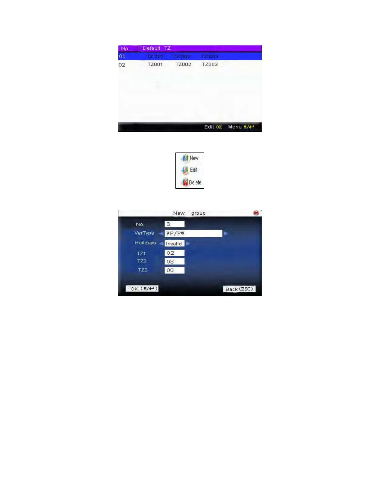 Press / to select add. For example, to add a group whose time zone