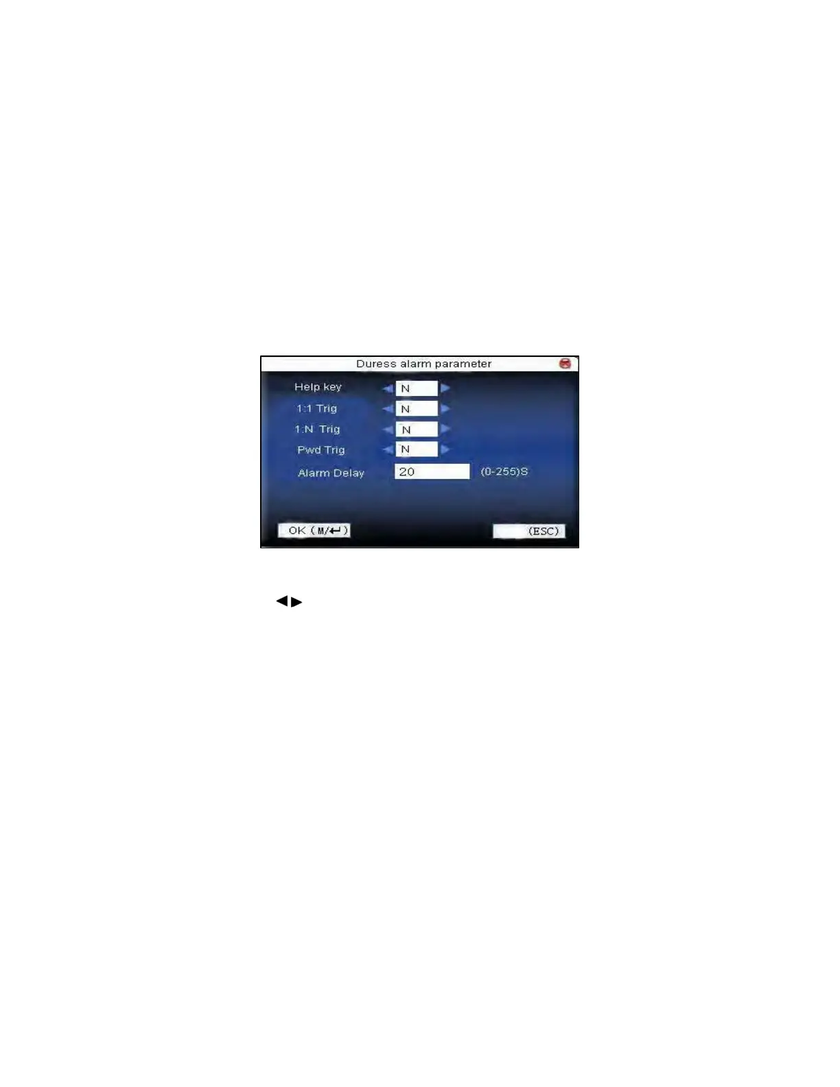 1: N Trig: if select “Yes”, when user use 1: N match mode, alarm signal