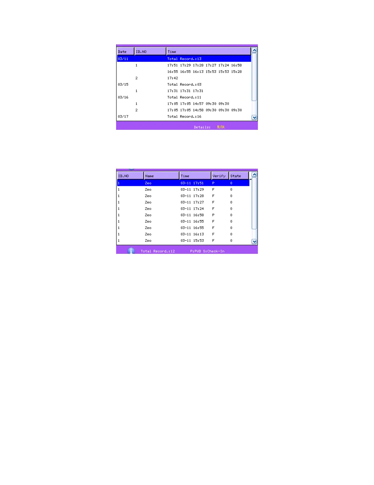 For example, the detailed attendance information of employee 10001 on