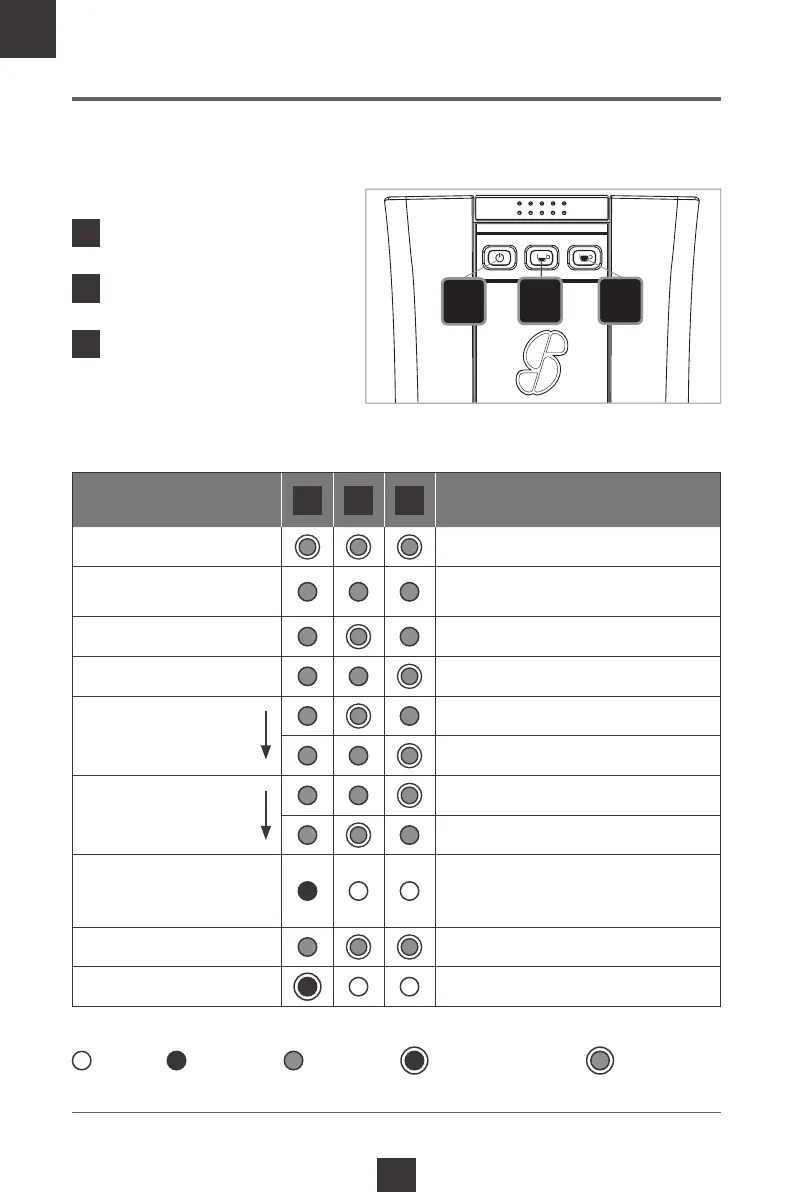 Taste 1/2 in blauer Farbe, Taste 3 blinkt blau.