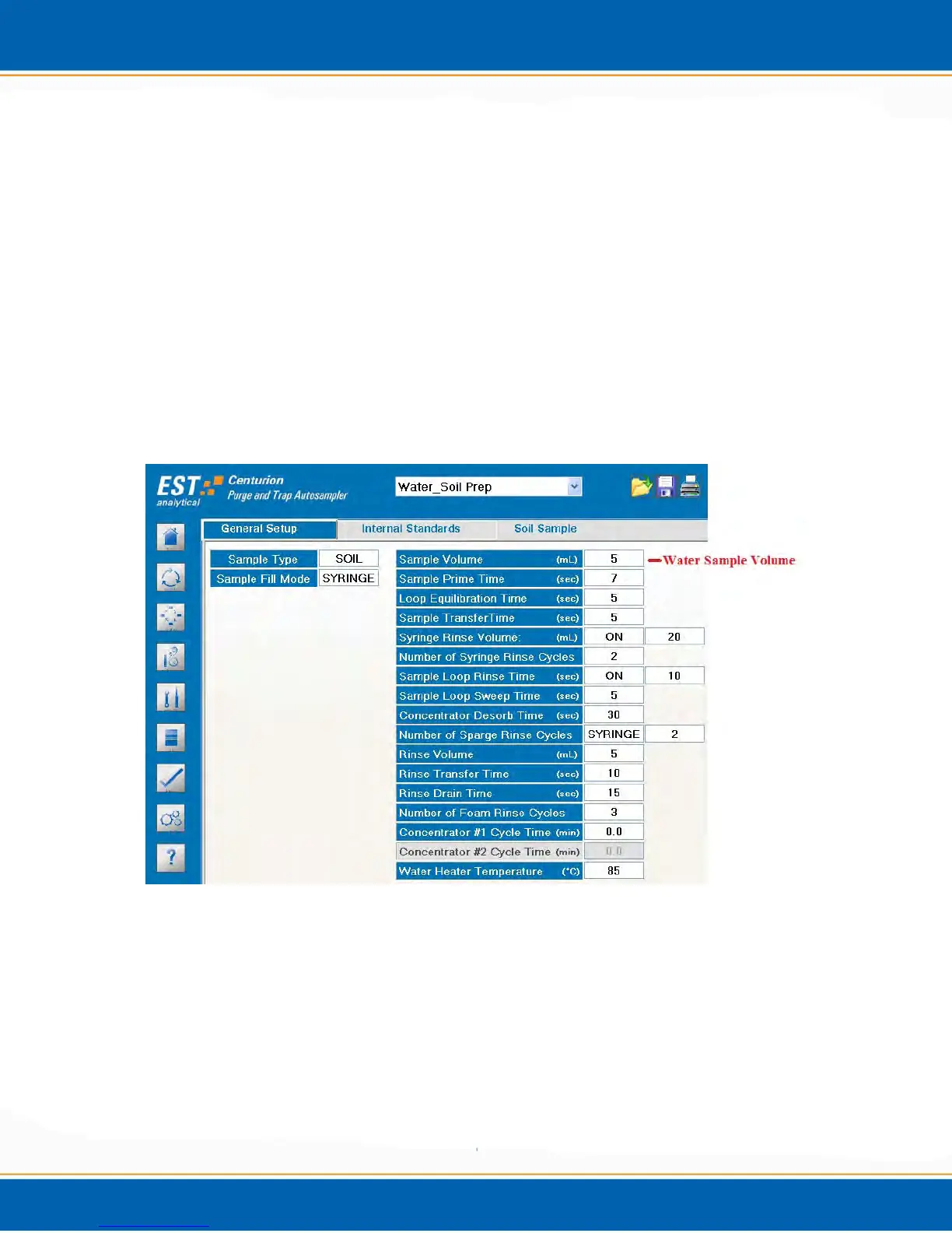 Figure A1: Water/Soil Prep Mode General Setup Parameters