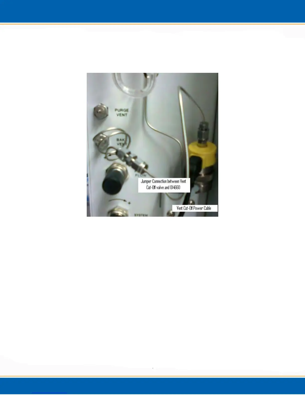8. Plug in the vent cut-off valve power cable from the communication cable into the valve.