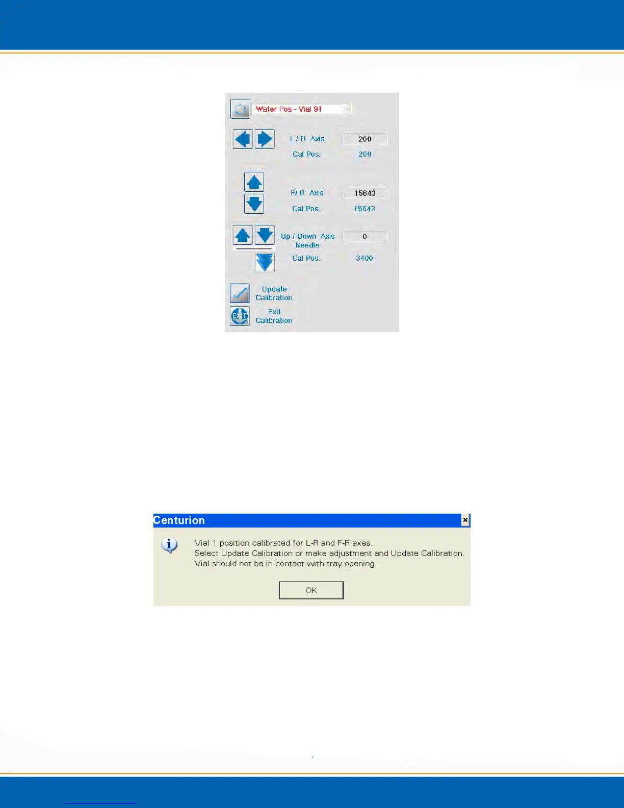22. This concludes the water axis calibration. If you have a Centurion W, the calibration