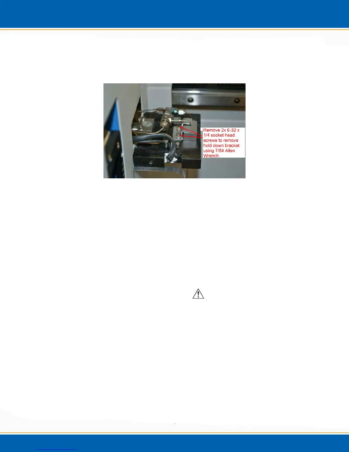 4. Remove the two 6-32 x 1/4 inch screws holding down the needle bracket using a 7/64