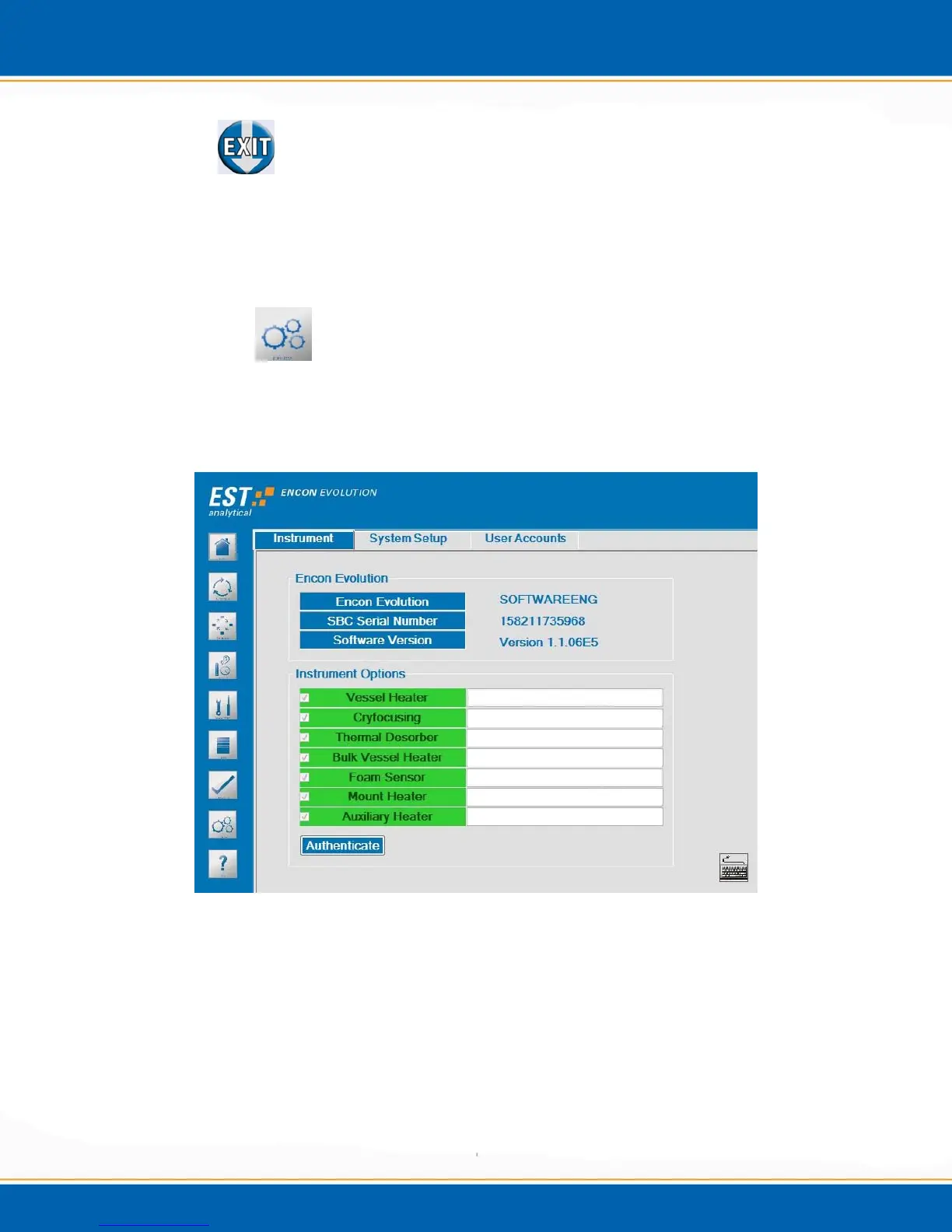 application, <click> Exit icon. This will drop the Encon EV application and return to the